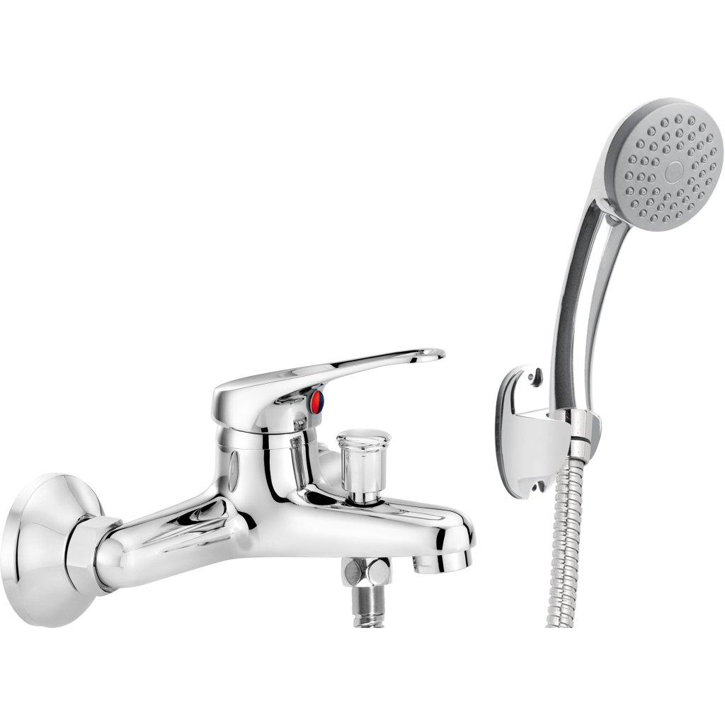 Moderní směšovací nástěnná vanová baterie s ruční sprchou. Baterie je vybavena zpětnými ventily, které zamezují vtékání již smíšené vody zpět do vodovodního řádu. Baterie má přepínač pro klasický výtok či sprchu.Parametry produktu: