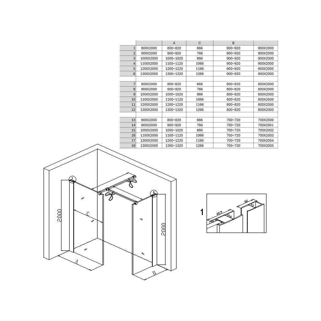 - Sestava 2 stěn: Dvoudílné řešení pro flexibilní vytvoření Walk-In koutu.