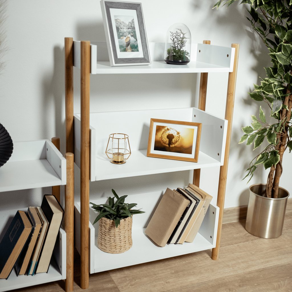 3-poličkový regál, přírodní bambus/bílá, BALTIKA TYP 2