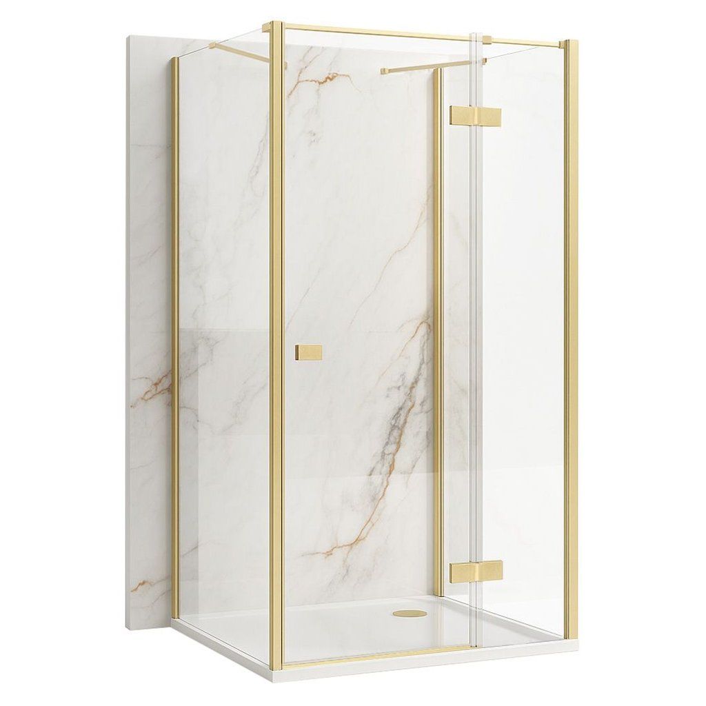 3-stěnný čtvercový sprchový kout REA ATLAS PRAVÝ 90/dveře x 90/zástěna cm, zlatá kartáčovaná/transparent - bez vaničky