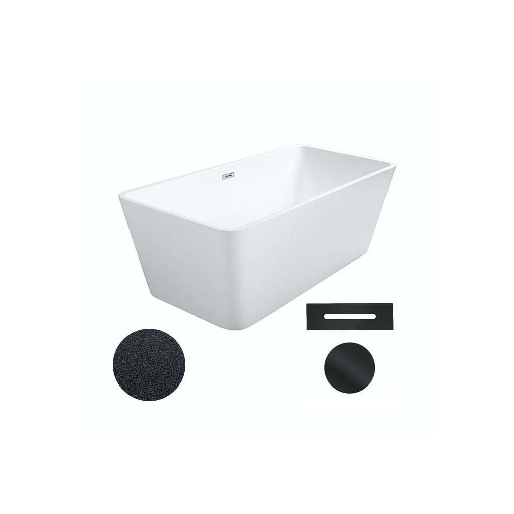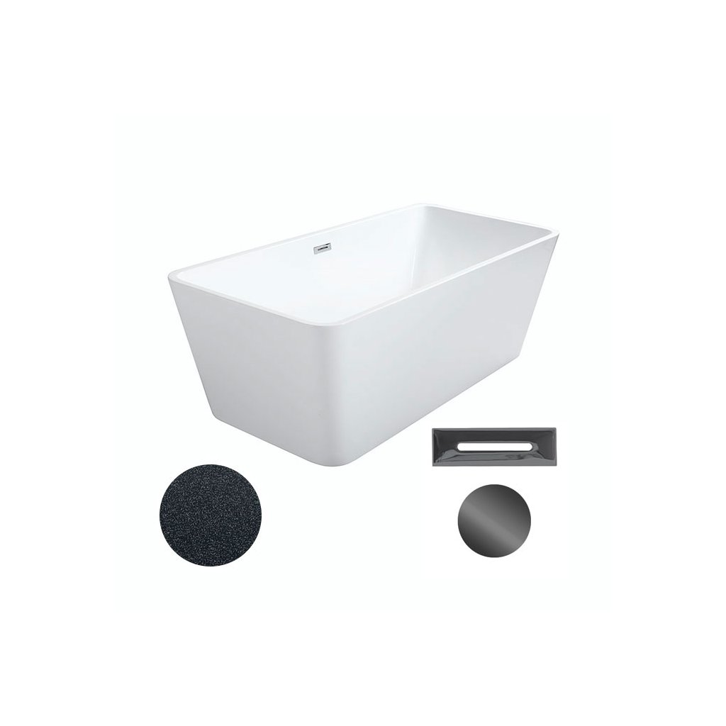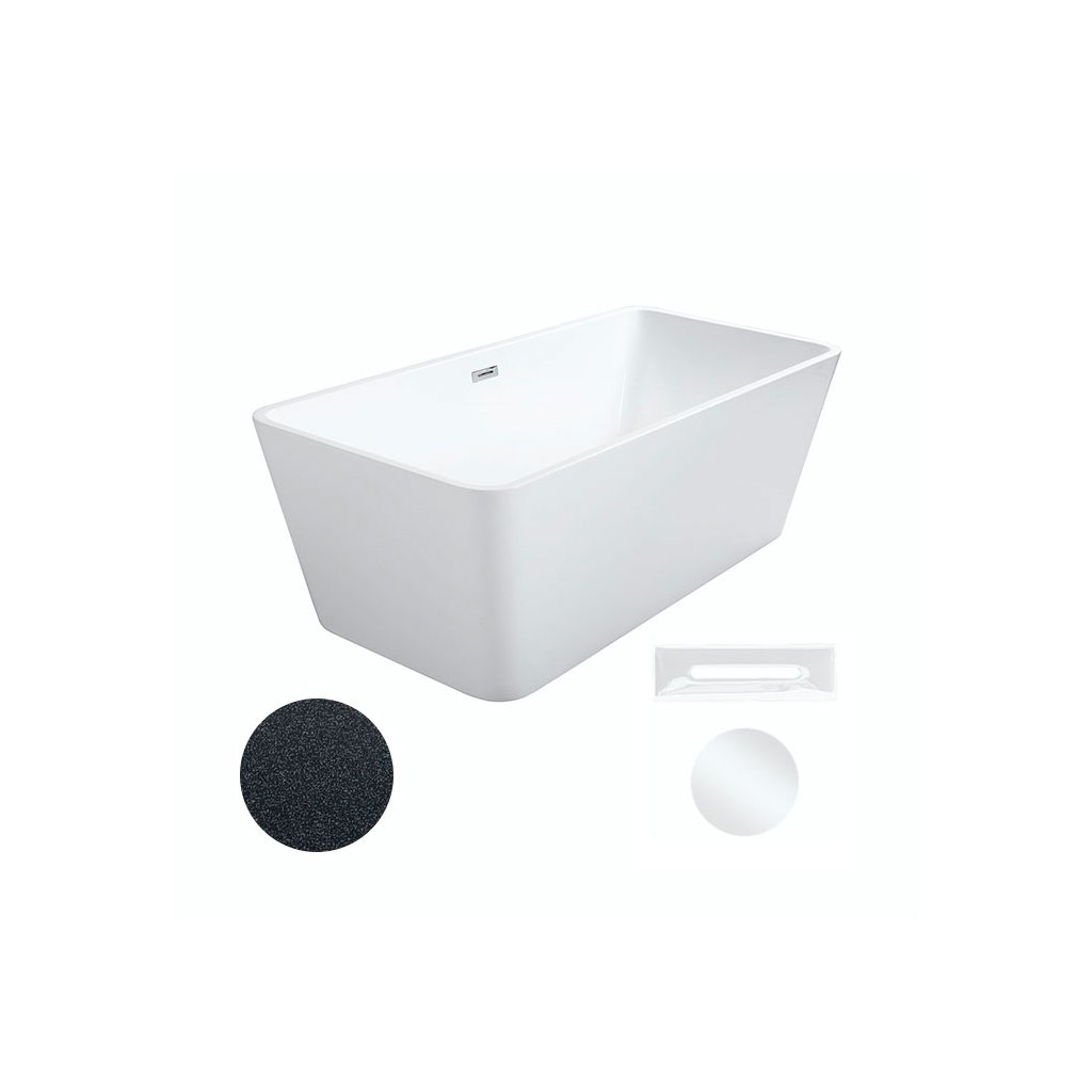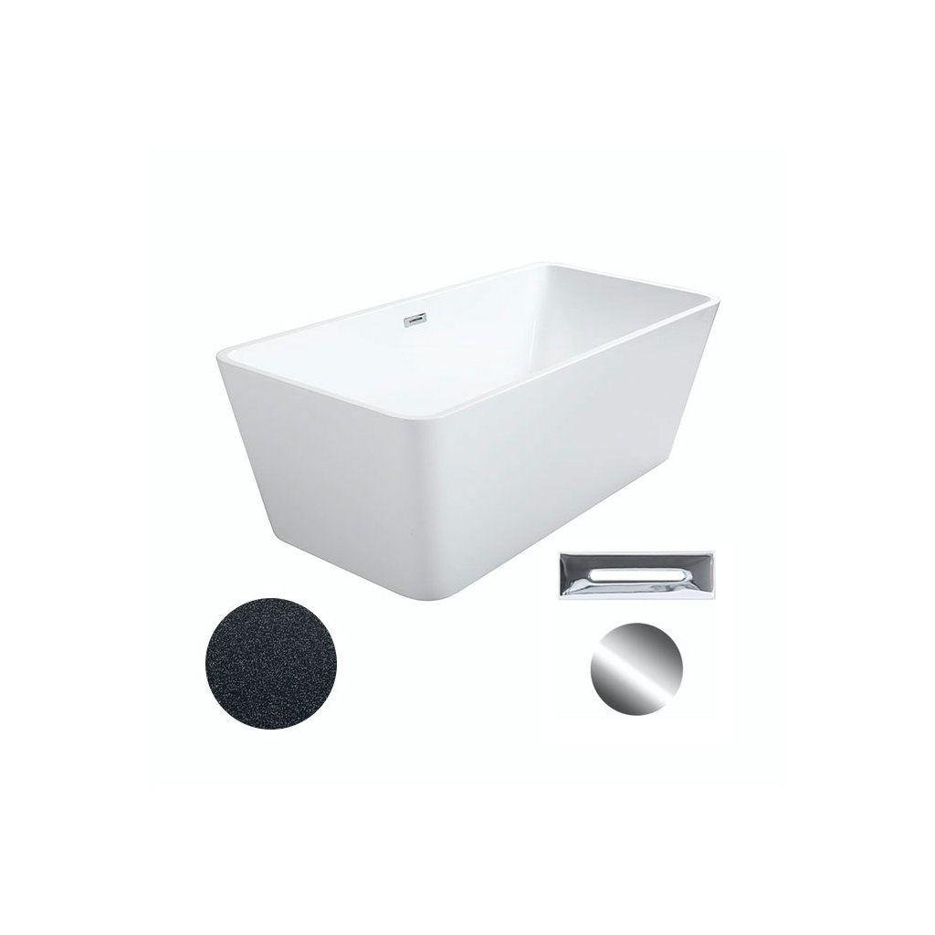 Součástí vany je odtokový sifón s výpusti Click-Clack a štěrbinovým přepadem v různých barevných variantách: chrom, černá, bílá, zlatá nebo grafit