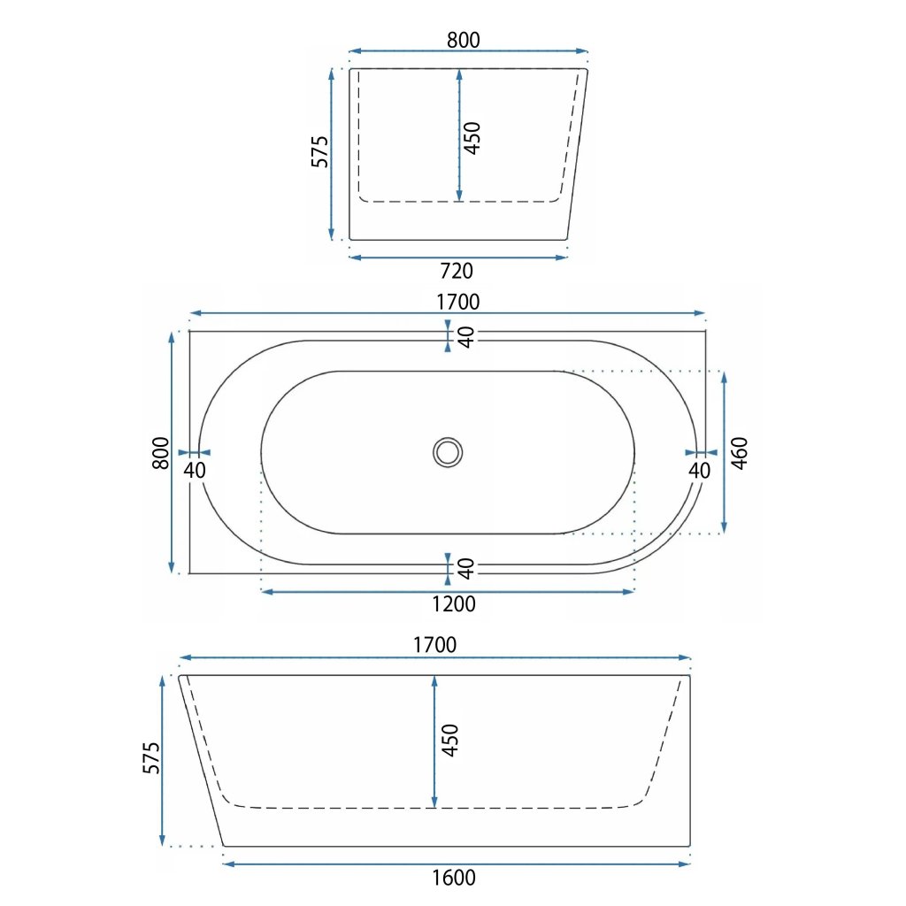 Akrylátová volně stojící vana ke stěně REA Wenus 170x80 cm LEVÁ