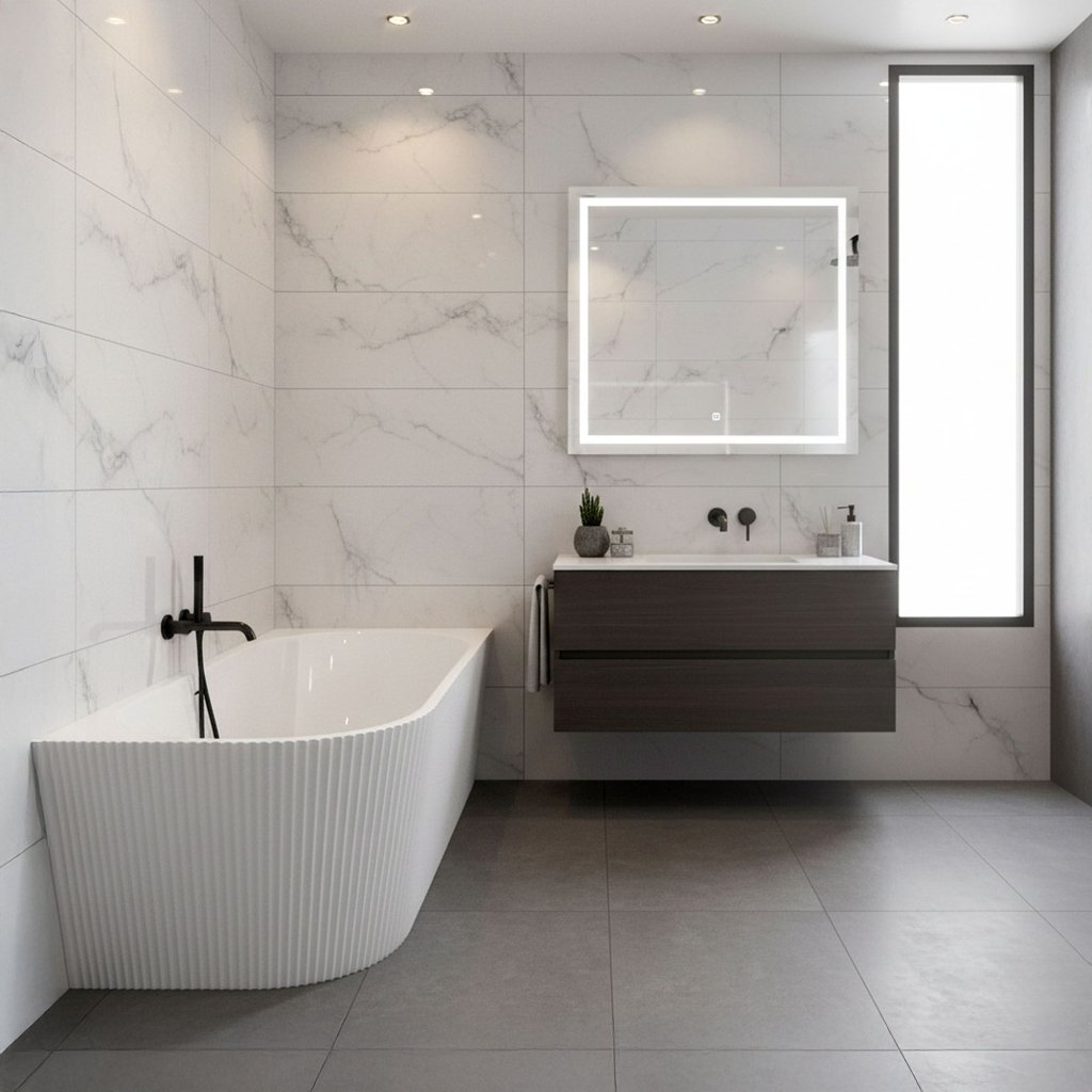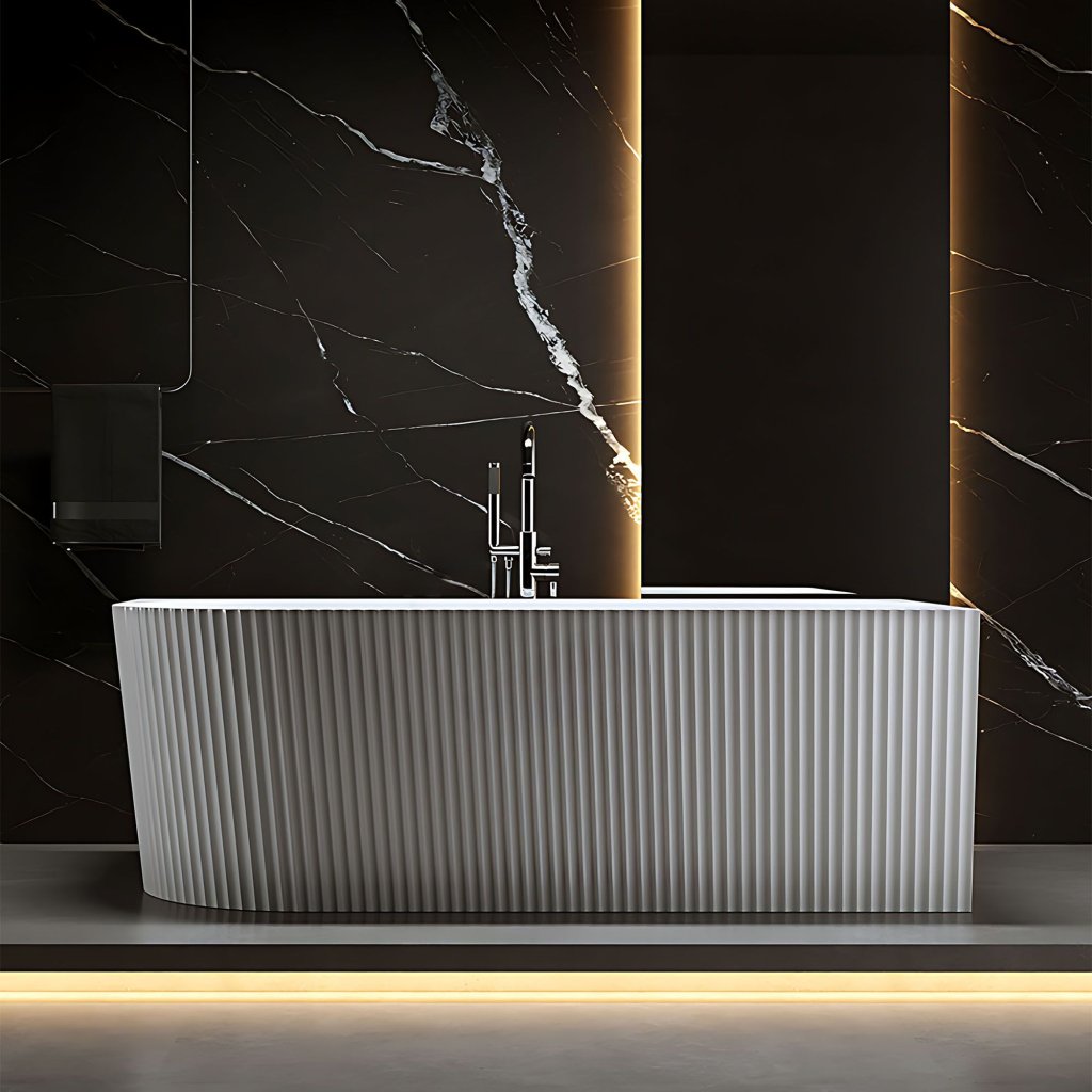 Moderní rýhovaná vana je spojením originálního designu a výjimečného komfortu. Její svisle žebrovaný povrch dodává interiéru osobitý styl a skvěle ladí s moderními koupelnami ve stylu modern, glamour nebo minimalistickém.