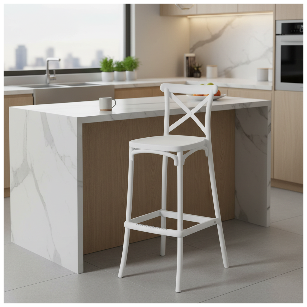 Ergonomicky tvarované sedadlo a opěradlo zajišťují maximální pohodlí při posezení u barového pultu nebo vysokého stolku. Konstrukce je navržena s důrazem na stabilitu a dlouhou životnost, což z ní činí ideální volbu pro každodenní používání v domácnostech i v komerčních prostorách. Čisté linie židle opticky odlehčí prostor a dodají mu nádech moderní svěžesti.