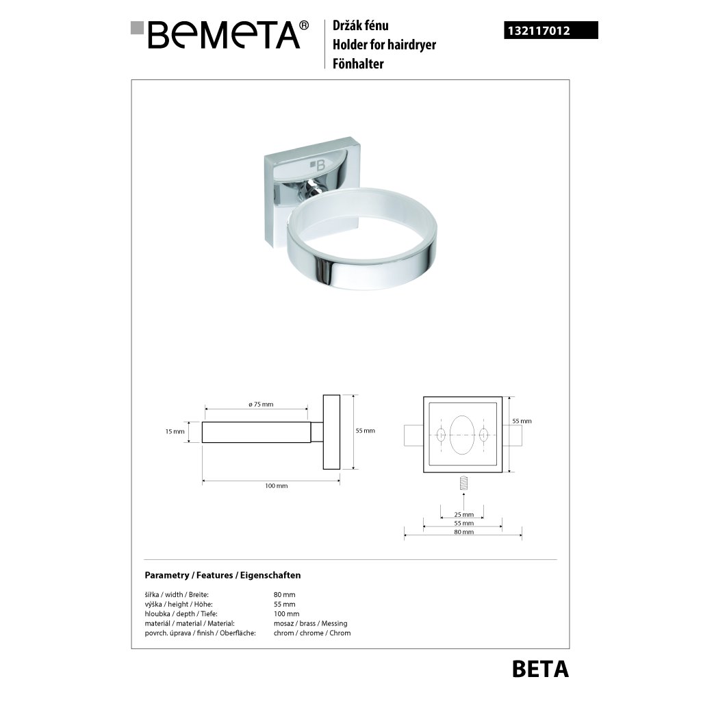 Nadčasová estetika a dokonale přesné tvary. Dvě hlavní poznávací znamení produktové řady BETA. Potěší všechny moderně laděné koupelny, do kterých vnese pocit přepychu i harmonie. Kolekce se nese ve světlých tónech a většinou kombinuje sklo s pochromovanou povrchovou úpravou. Z konkrétních produktů pojímá různé druhy věšáčků, poliček a držáků, ale také mýdlenky a dávkovače, toaletní kartáče či kosmetická zrcátka.Doplňkové parametry