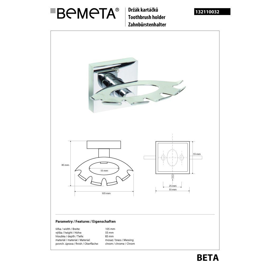 Nadčasová estetika a dokonale přesné tvary. Dvě hlavní poznávací znamení produktové řady BETA. Potěší všechny moderně laděné koupelny, do kterých vnese pocit přepychu i harmonie. Kolekce se nese ve světlých tónech a většinou kombinuje sklo s pochromovanou povrchovou úpravou. Z konkrétních produktů pojímá různé druhy věšáčků, poliček a držáků, ale také mýdlenky a dávkovače, toaletní kartáče či kosmetická zrcátka.Doplňkové parametry