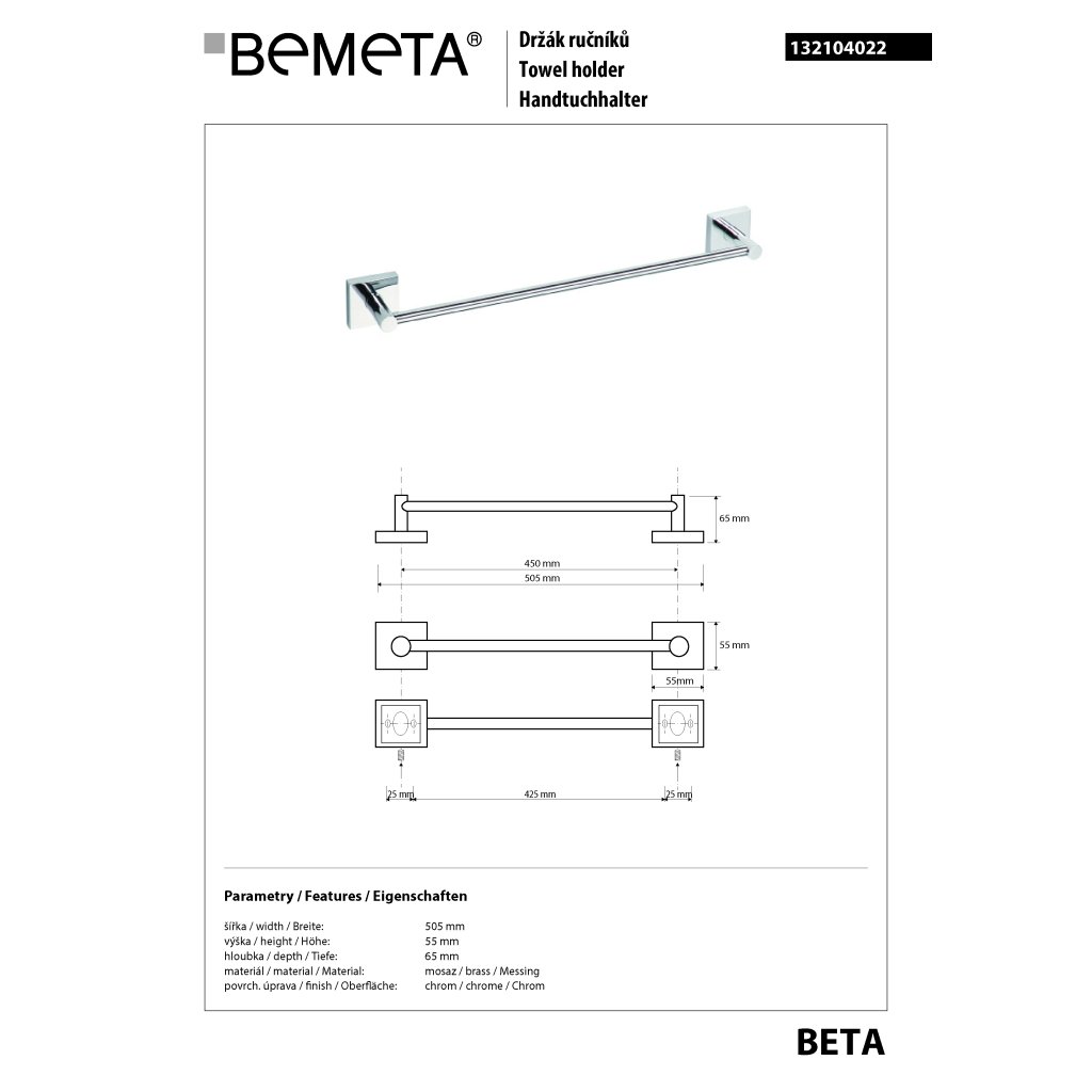 Nadčasová estetika a dokonale přesné tvary. Dvě hlavní poznávací znamení produktové řady BETA. Potěší všechny moderně laděné koupelny, do kterých vnese pocit přepychu i harmonie. Kolekce se nese ve světlých tónech a většinou kombinuje sklo s pochromovanou povrchovou úpravou. Z konkrétních produktů pojímá různé druhy věšáčků, poliček a držáků, ale také mýdlenky a dávkovače, toaletní kartáče či kosmetická zrcátka.Doplňkové parametry