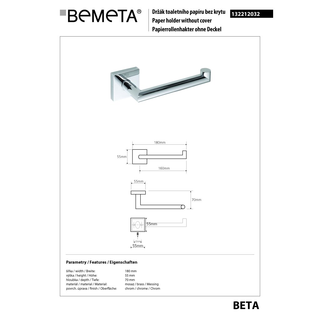 Nadčasová estetika a dokonale přesné tvary. Dvě hlavní poznávací znamení produktové řady BETA. Potěší všechny moderně laděné koupelny, do kterých vnese pocit přepychu i harmonie. Kolekce se nese ve světlých tónech a většinou kombinuje sklo s pochromovanou povrchovou úpravou. Z konkrétních produktů pojímá různé druhy věšáčků, poliček a držáků, ale také mýdlenky a dávkovače, toaletní kartáče či kosmetická zrcátka.Doplňkové parametry