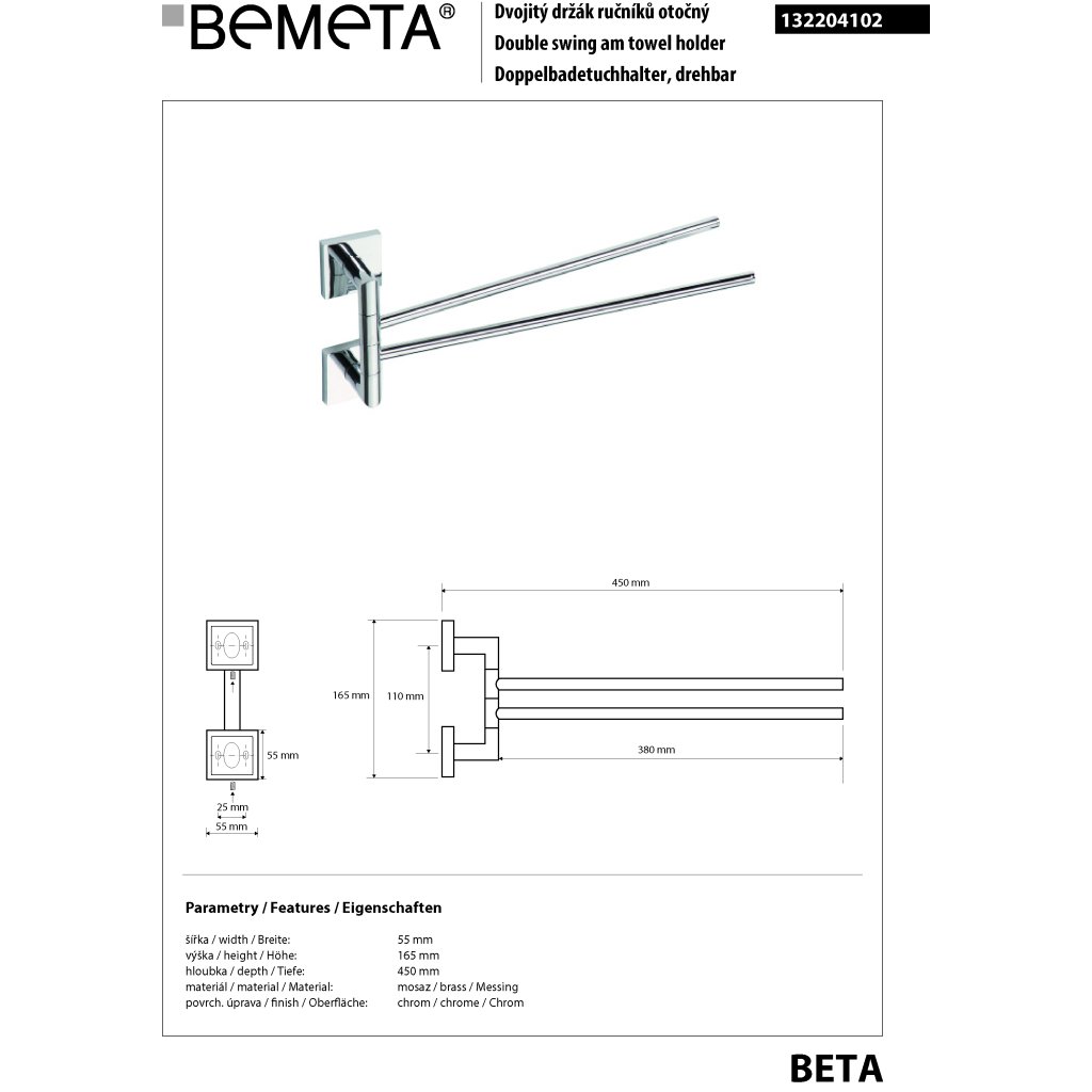 BETA: Držák ručníků dvojitý otočný 450 mm - 132204102