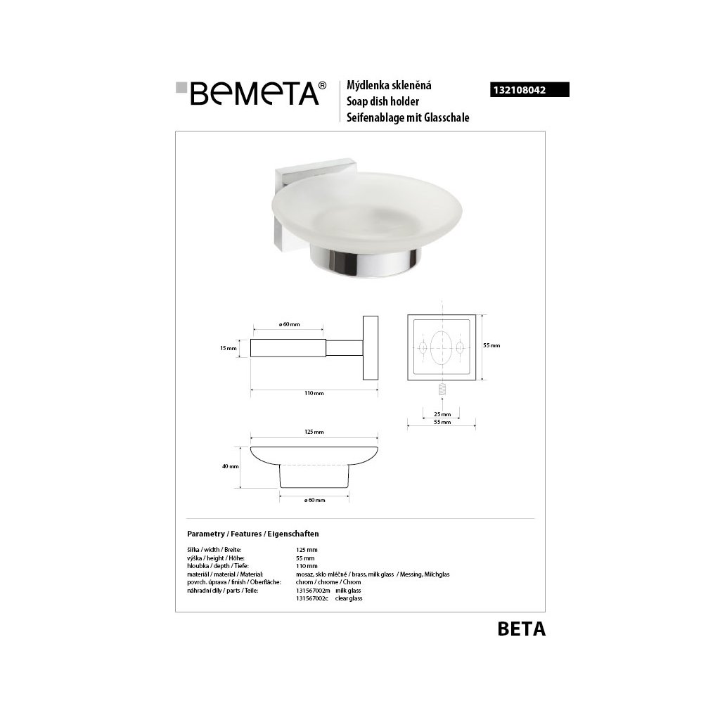 Nadčasová estetika a dokonale přesné tvary. Dvě hlavní poznávací znamení produktové řady BETA. Potěší všechny moderně laděné koupelny, do kterých vnese pocit přepychu i harmonie. Kolekce se nese ve světlých tónech a většinou kombinuje sklo s pochromovanou povrchovou úpravou. Z konkrétních produktů pojímá různé druhy věšáčků, poliček a držáků, ale také mýdlenky a dávkovače, toaletní kartáče či kosmetická zrcátka.Doplňkové parametry