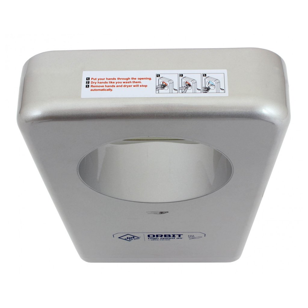 Kruhový design, absorpční kámen a možnost použití na toaletách pro hendikepované, dělají z Jet Dryer ORBIT naprosto jedinečný vysoušeč. Ruce jsou díky tornádo efektu suché do sedmi sekund. Díky tomu, že se instaluje výše, než ostatní tryskové vysoušeče, můžete jej dobře využít i na prostorově atypických umývárnách. Stejně jako ostatní vysoušeče, vám Jet Dryer ORBIT pomůže snížit provozní náklady, a navíc chráníte přírodu.