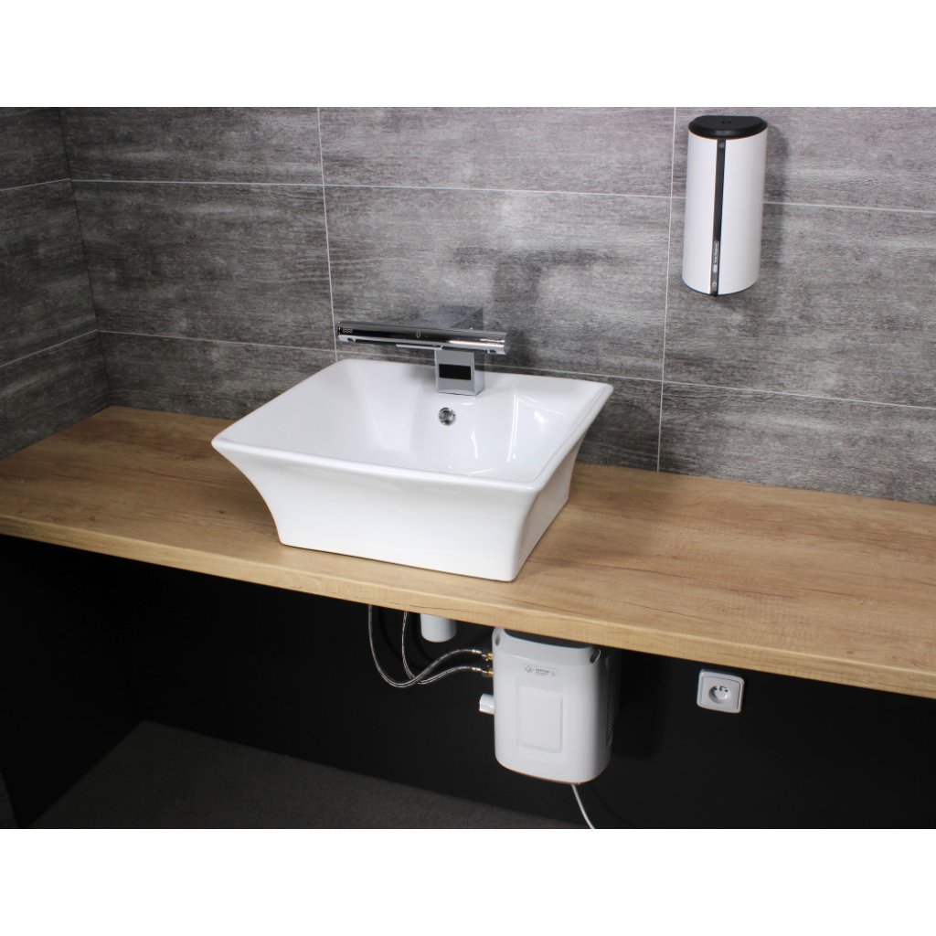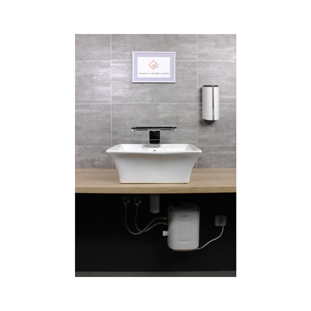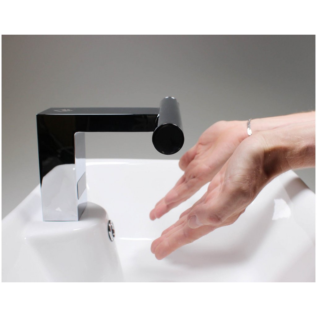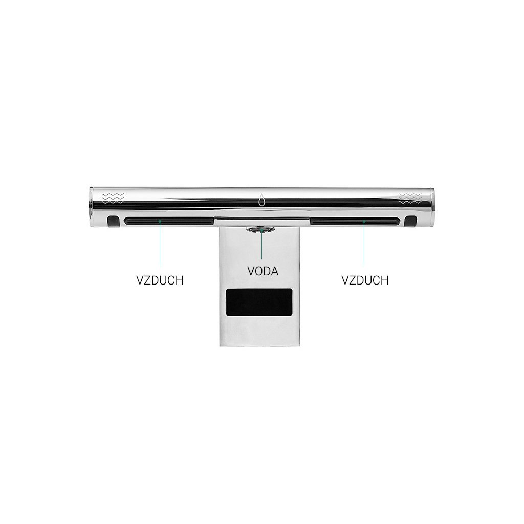 Hygienické mytí a sušení rukou – jednoduché, rychlé a pohodlné. Své ruce jednoduše vložíte doprostřed pod vodovodní baterii, automaticky začne téct voda o předem nastavené teplotě. Po stranách baterie se nachází dvě trysky vysoušeče. Spuštění vysoušeče je rovněž bezkontaktní, stačí pod trysky vsunout ruce a dle potřeby je osušit.