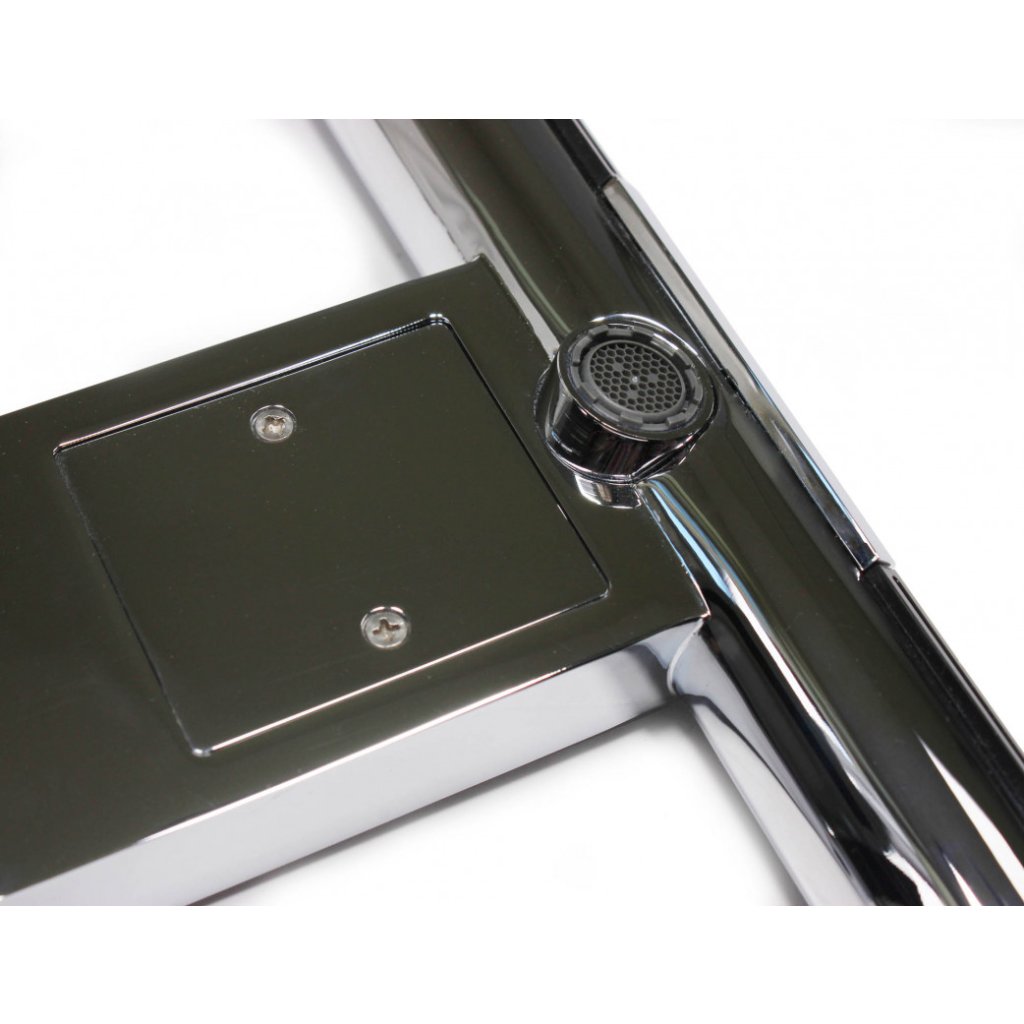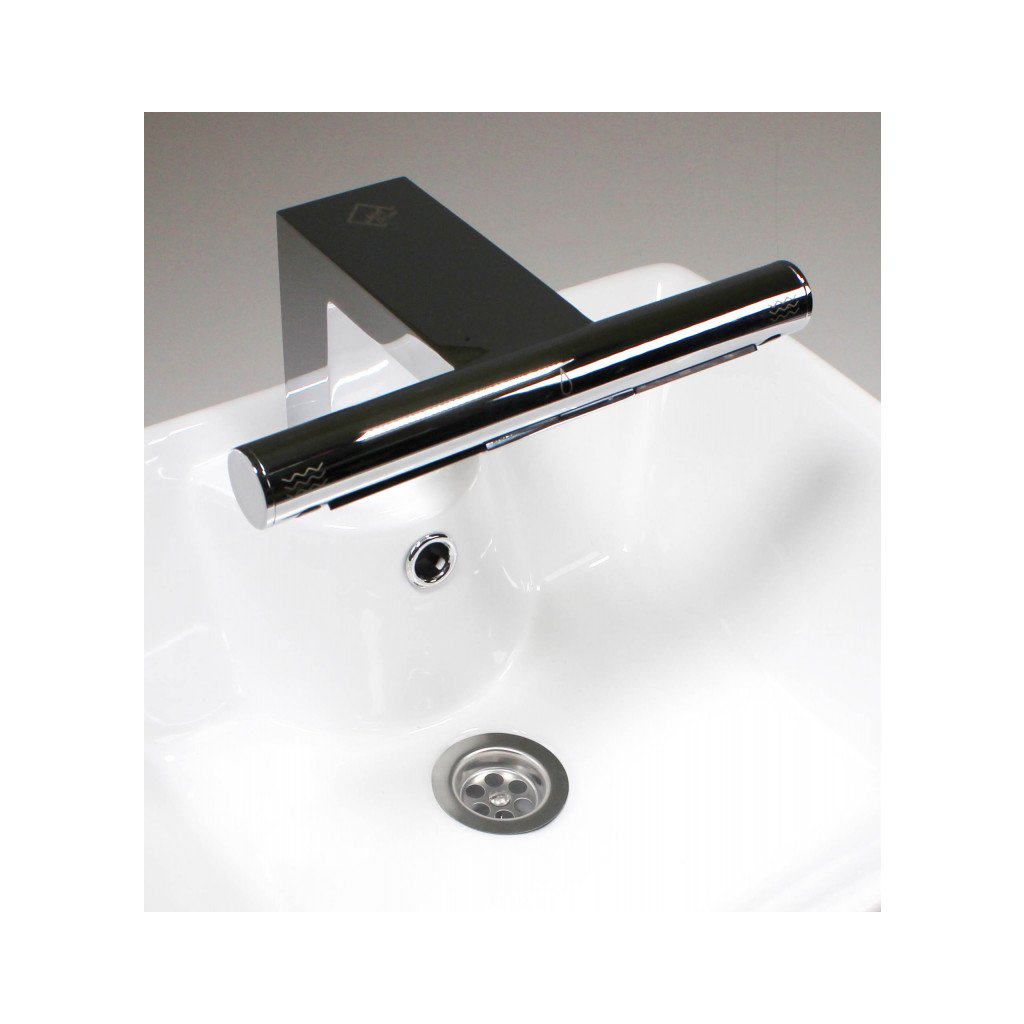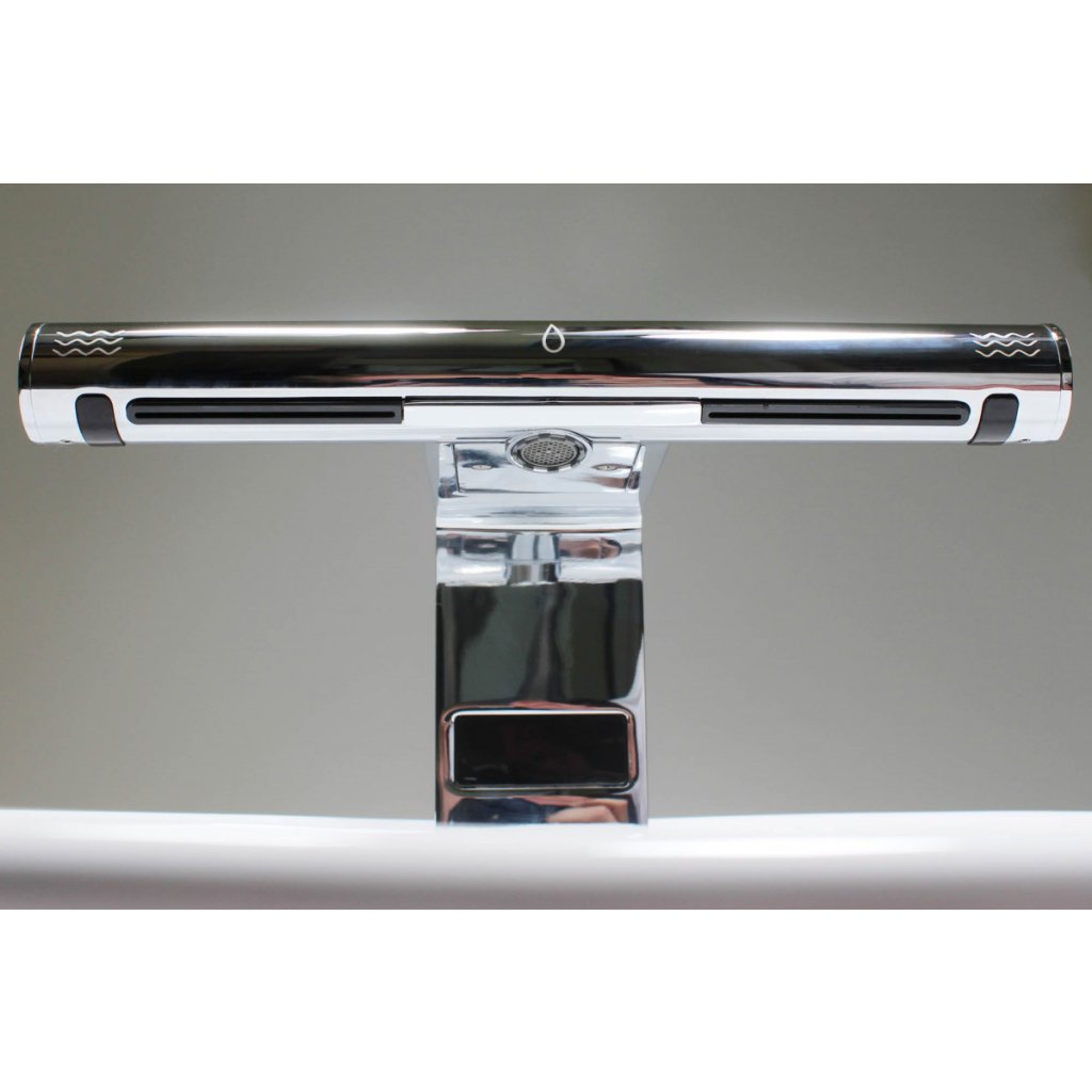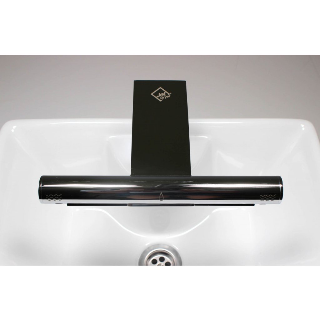 Baterie disponuje bočními rameny s podélnými tryskami, které stírají vodu z rukou proudem vzduchu rovnou do umyvadla. Podlaha, tak zůstává suchá a maximálně bezpečná.
