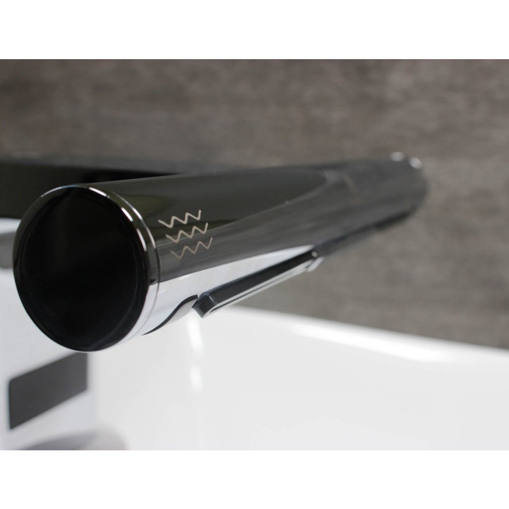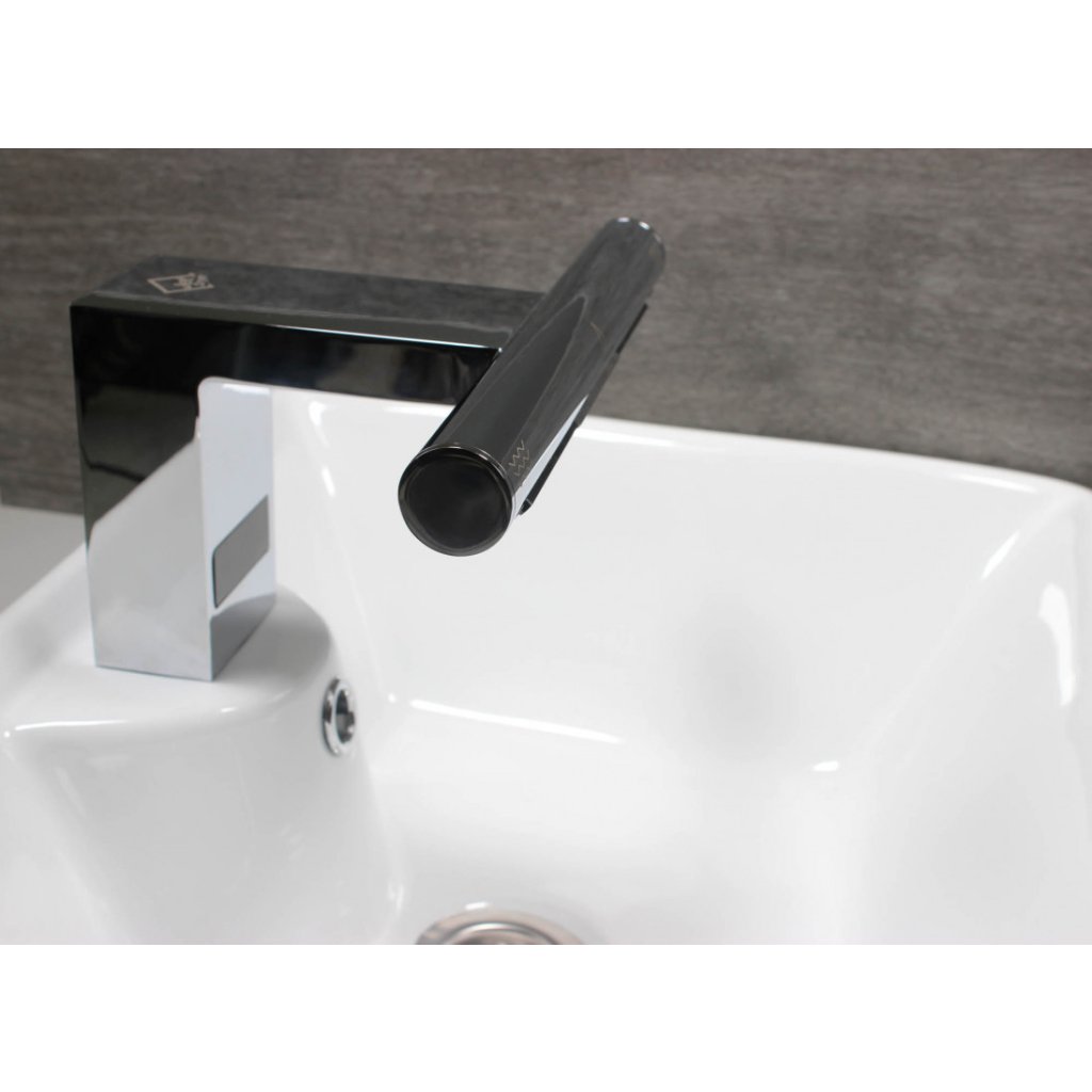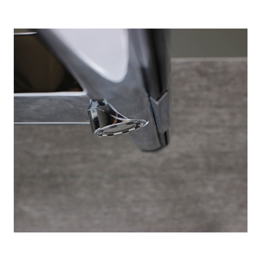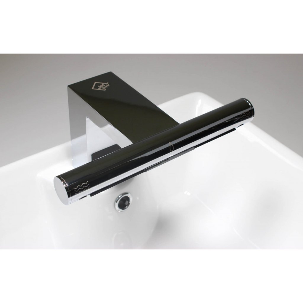Baterie disponuje bočními rameny s podélnými tryskami, které stírají vodu z rukou proudem vzduchu rovnou do umyvadla. Podlaha, tak zůstává suchá a maximálně bezpečná.