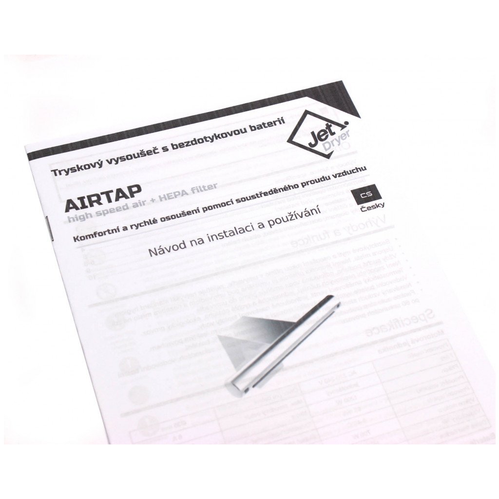 Vysoušeč Jet Dryer AIRTAP je kromě ochrany proti zkratu a přetížení vybaven také funkcí auto stop (zabudovaný časovač). V případě příliš dlouhého provozu se automaticky vypne. Vysoušení je vypnuto po 45 sekundách nepřetržitého provozu, vodovodní baterie po 60 sekundách provozu.
