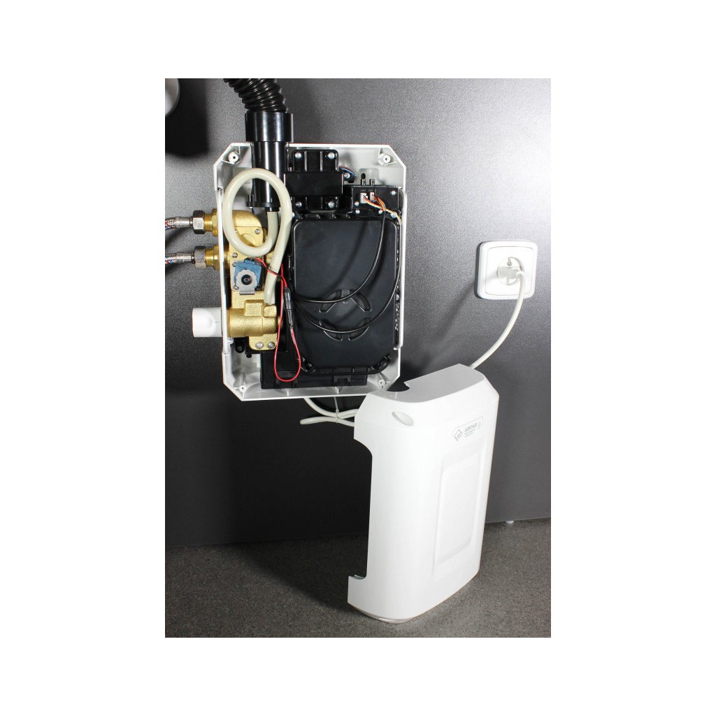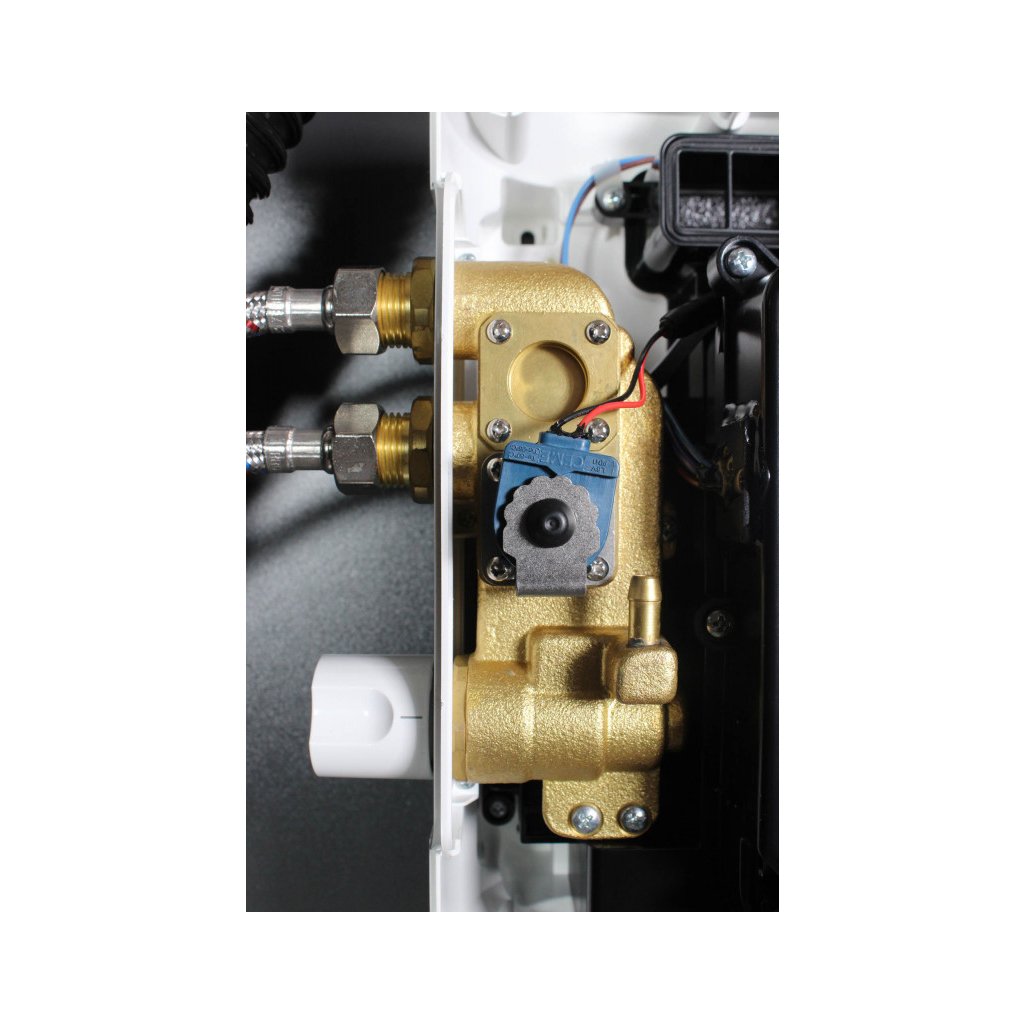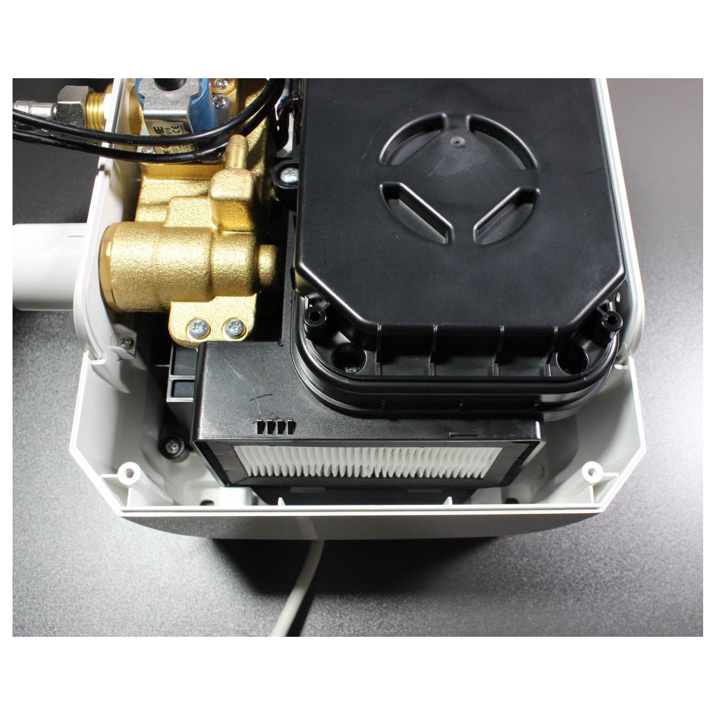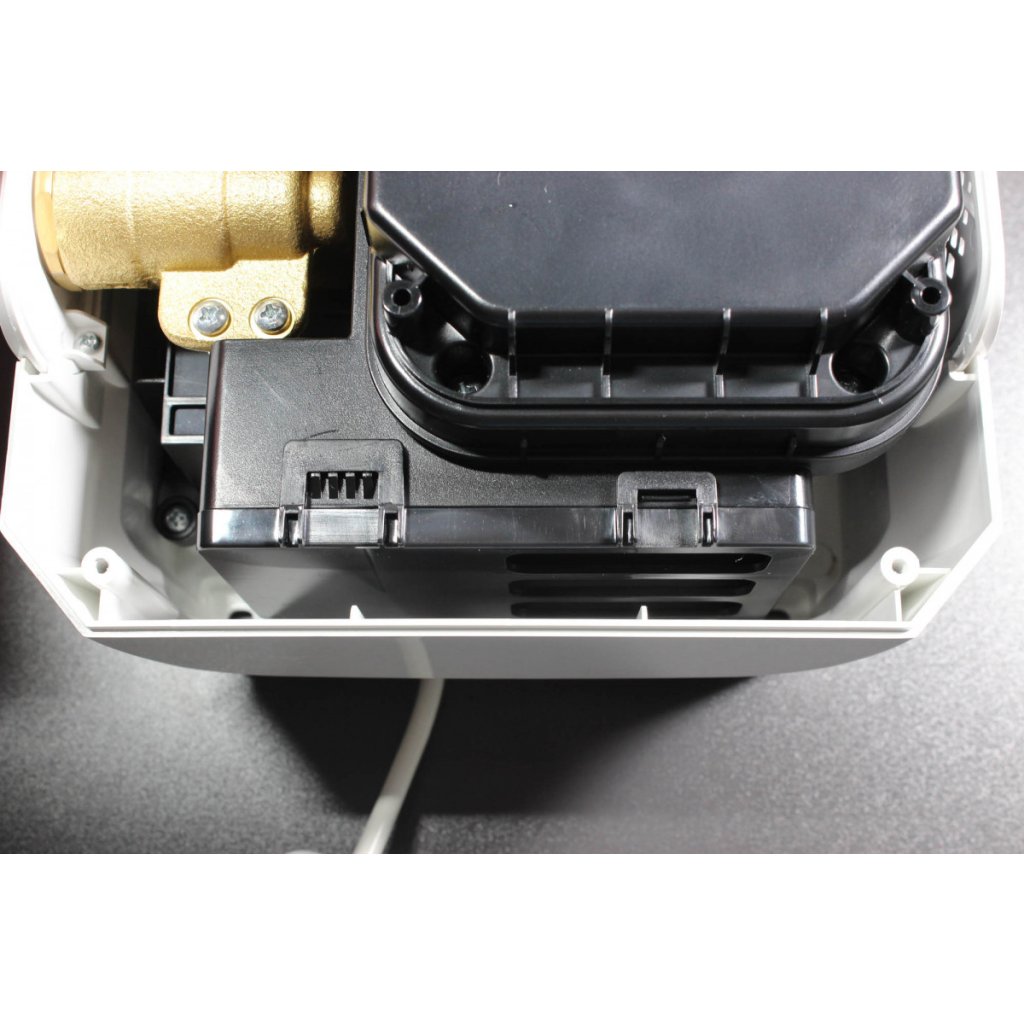 Přesnou teplotu vody z baterie zajišťuje zabudovaný termostatický směšovací ventil. Pomocí otočné hlavice regulace na levém boku motorové jednotky lze jednoduše nastavit požadovanou výstupní teplotu. S automatickým směšovacím ventilem je tak udržována konstantní teplota vody, bez ohledu na případné teplotní výkyvy ve vodovodním řádu.
