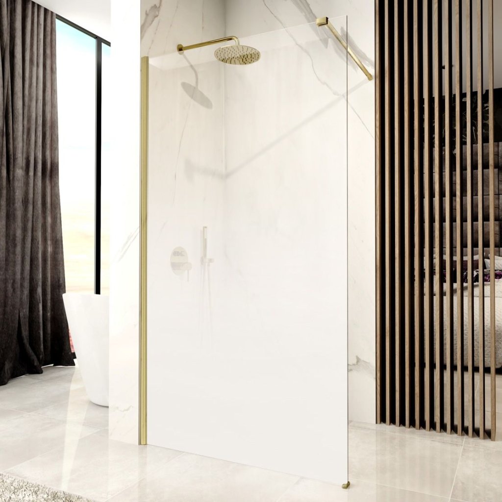 Bezrámová sprchová zástěna REA AERO 110 cm, Ombre white/kartáčovaná zlatá - bez vaničky