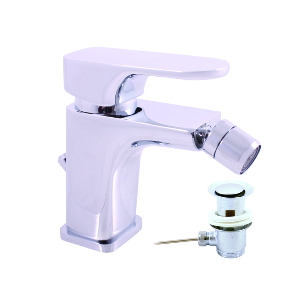 Vodovodní baterie bidetová stojánková s otvíráním odpadu.