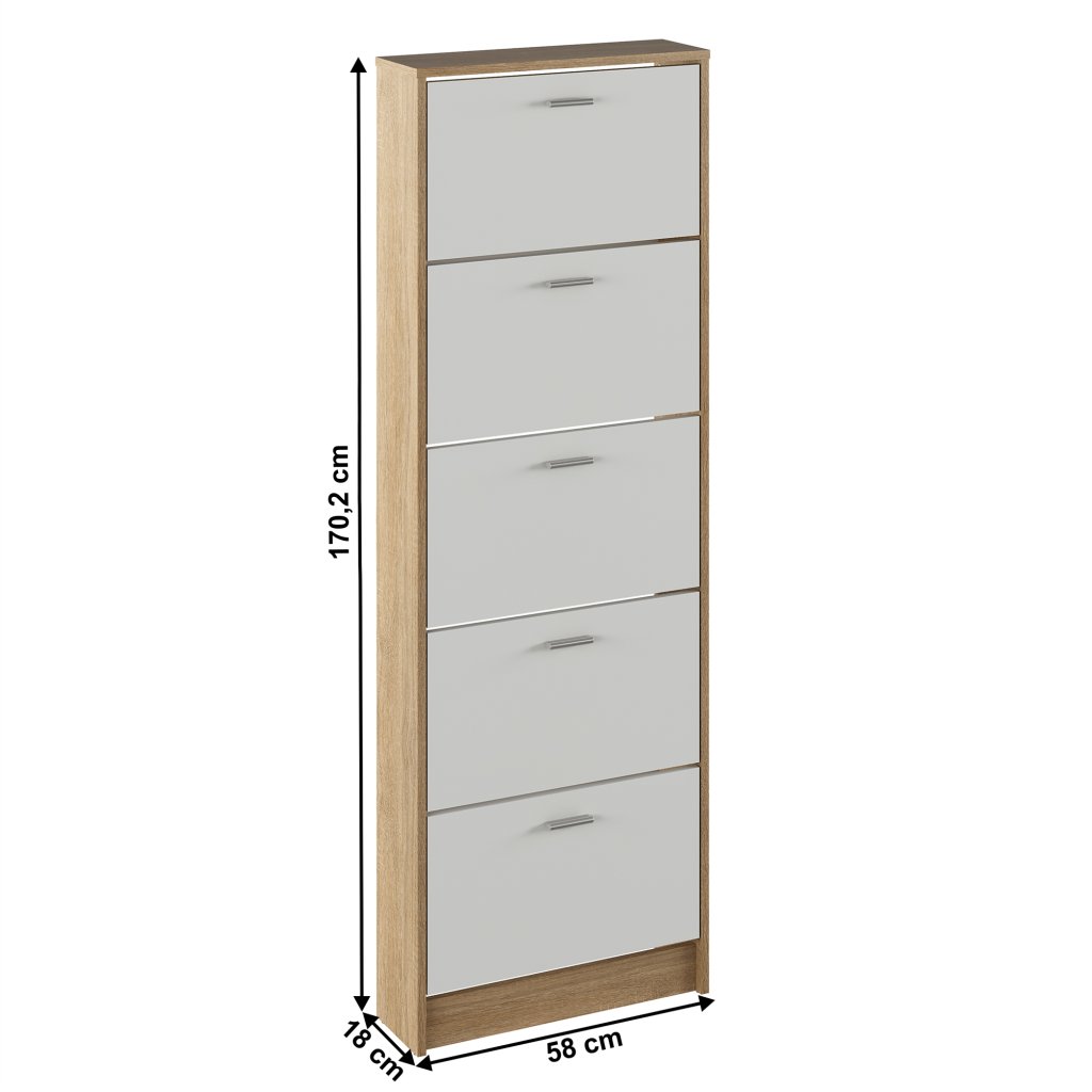 Botník, 5-řadý, dub sonoma/bílá, MOBI 15