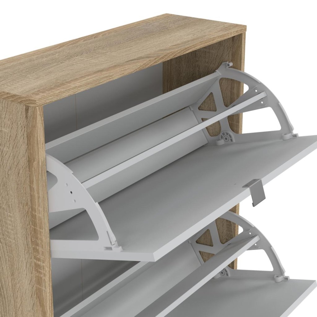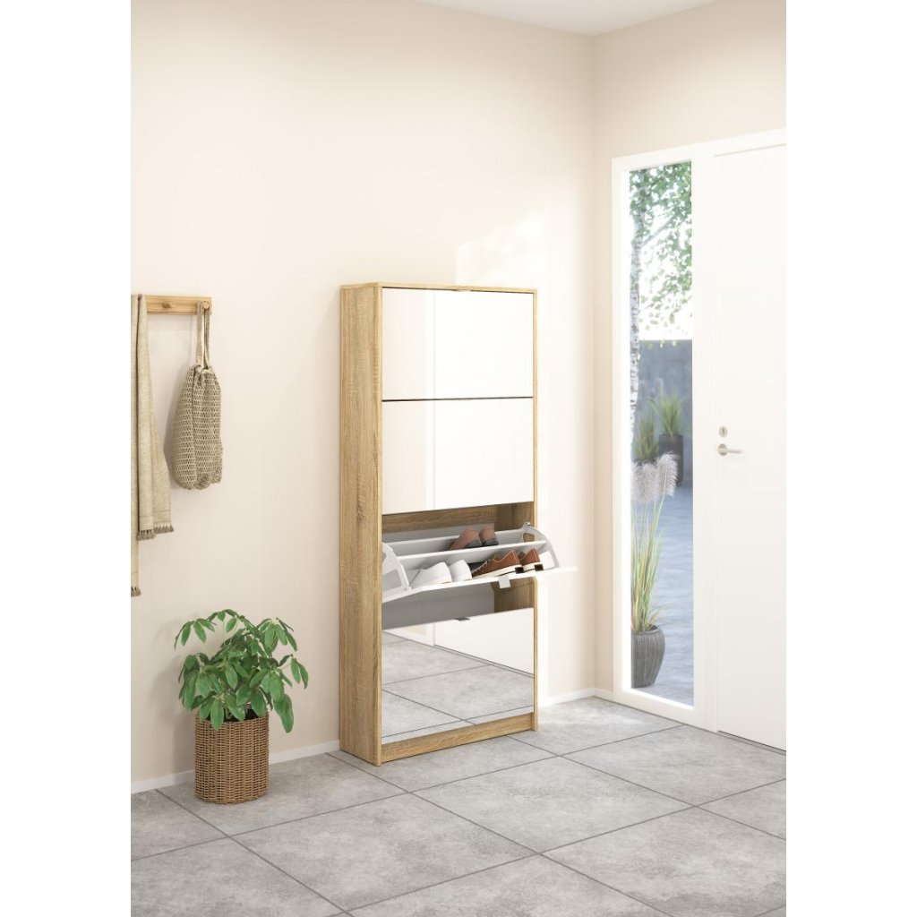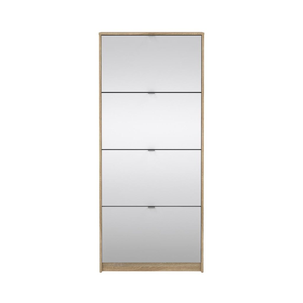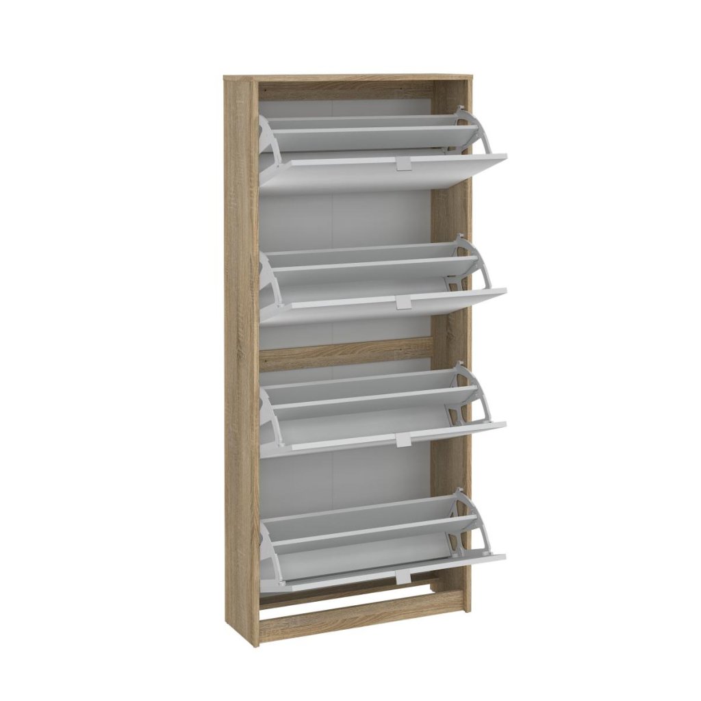 Po prostorném botníku touží každý milovník bot i početná rodina. Boty se hromadí, vzniká chaos a zakopávání o boty je na denním pořádku. Zachraňte svou předsíň před nepořádkem a pořiďte si botník Flap s výklopnými dvířky. Vaše předsíň bude uklizená a zakopávání o boty se stane minulostí. Díky svému provedení pojme botník Flap opravdu velké množství bot. Zrcadlo na dvířkách botníku dokáže místnost opticky zvětšit a je nepostradatelné při úpravě zevnějšku před odchodem z domu.
