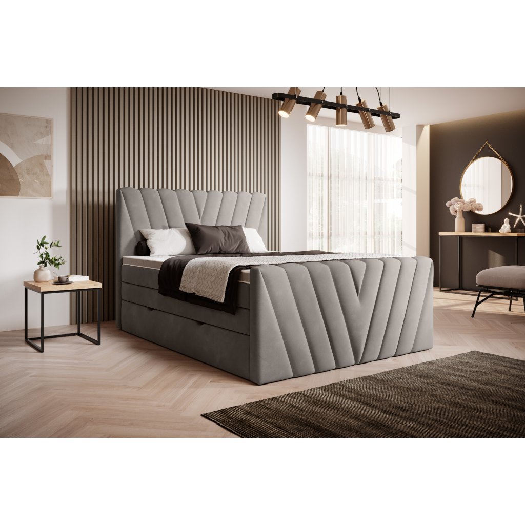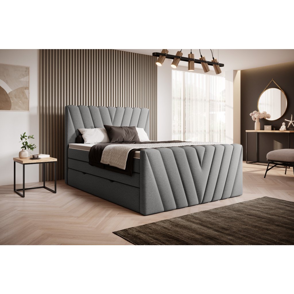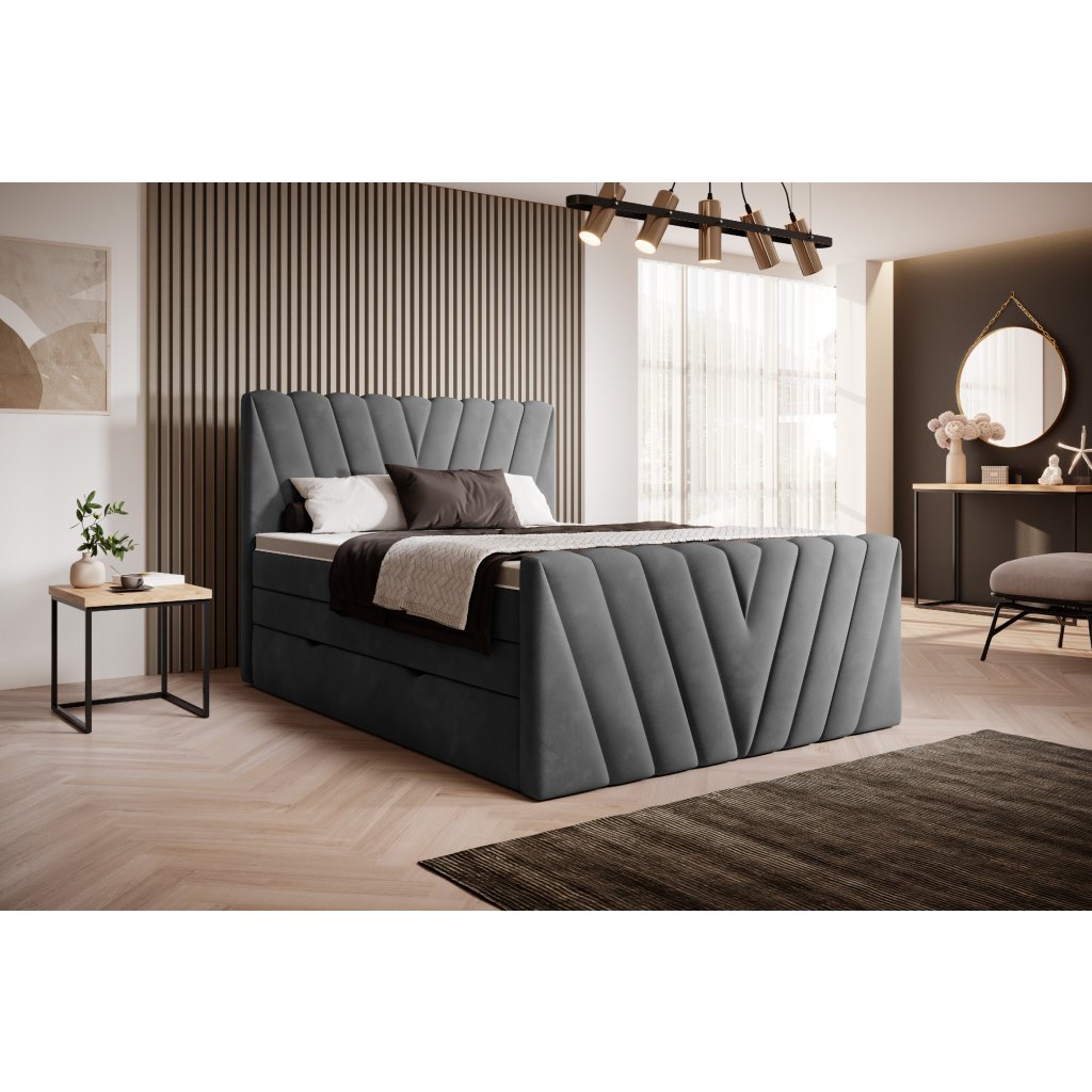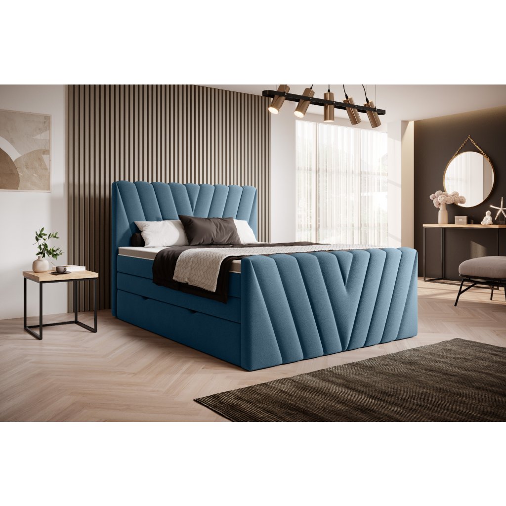 Kontinentální postel Candice vnáší do ložnice odvahu díky čalounění v mnoha různých barvách z kolekce látek ELTAP. Navíc je k dispozici až ve třech rozměrech spací plochy, tj. 140/160/180 x 200 cm. Boxspring Candice bude jistě výrazným základem mnoha ložnic, protože je stylový a pohodlný zároveň. Čalouněná zadní část nábytku umožňuje jeho umístění v různých konfiguracích, a to i uprostřed místnosti. Další výhodou naší čalouněné postele jsou mimořádně pohodlné matrace, které jsou součástí balení. Jako postel typu boxspring je Candice vybavena spodní a vrchní matrací. Ta první je vyplněna pěnou T25 a pružinou Bonnel. Tuhost spodní matrace je H2/3 a vrchní matrace má stupeň tuhosti H3. Kromě toho je vrchní matrace této čalouněné postele oboustranná a opatřená zipem. To jistě usnadňuje udržování matrace v čistotě. Díky všem těmto prvkům je kontinentální postel Candice neuvěřitelně pohodlná a vypadá krásně v každém interiéru.