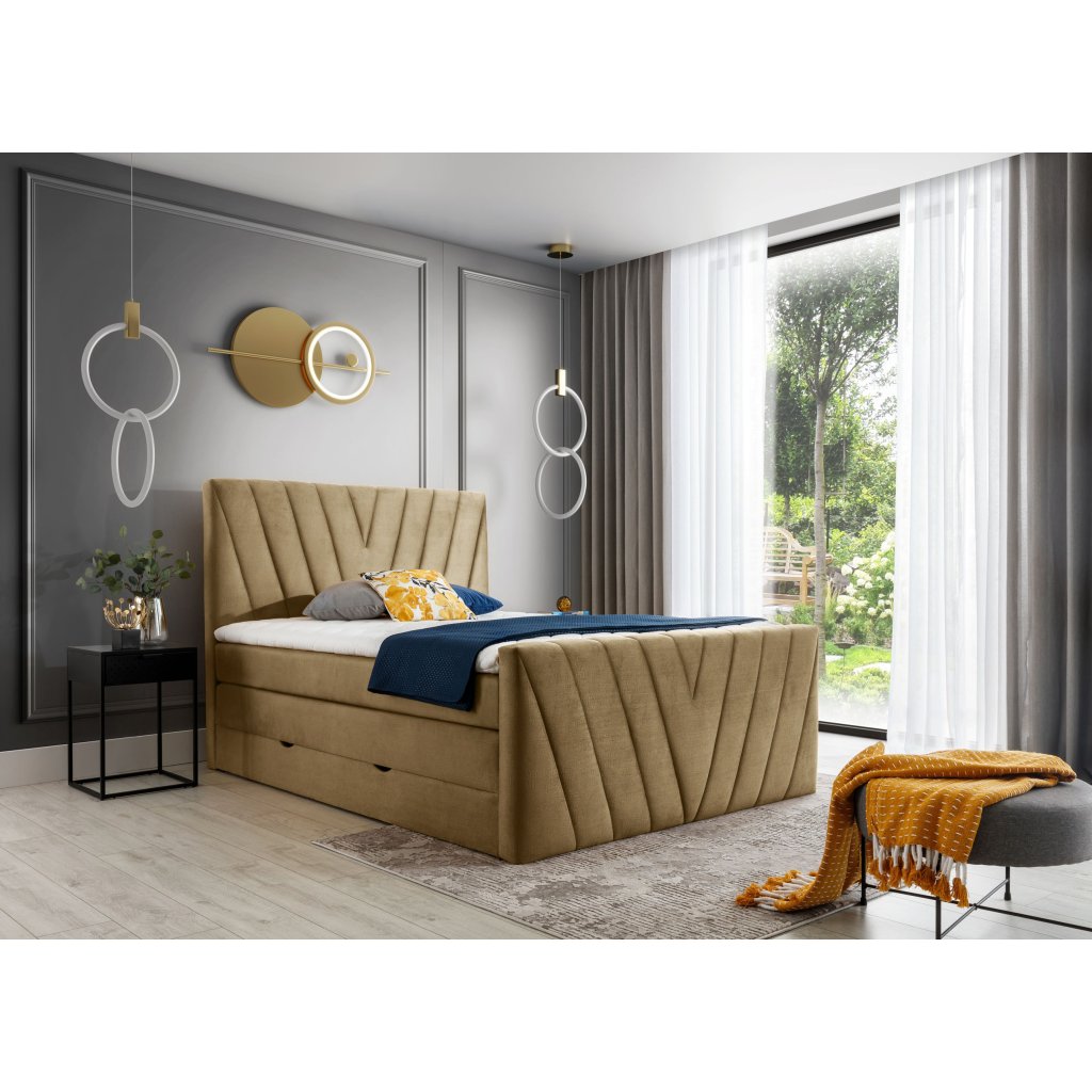 Kontinentální postel Candice vnáší do ložnice odvahu díky čalounění v mnoha různých barvách z kolekce látek ELTAP. Navíc je k dispozici až ve třech rozměrech spací plochy, tj. 140/160/180 x 200 cm. Boxspring Candice bude jistě výrazným základem mnoha ložnic, protože je stylový a pohodlný zároveň. Čalouněná zadní část nábytku umožňuje jeho umístění v různých konfiguracích, a to i uprostřed místnosti. Další výhodou naší čalouněné postele jsou mimořádně pohodlné matrace, které jsou součástí balení. Jako postel typu boxspring je Candice vybavena spodní a vrchní matrací. Ta první je vyplněna pěnou T25 a pružinou Bonnel. Tuhost spodní matrace je H2/3 a vrchní matrace má stupeň tuhosti H3. Kromě toho je vrchní matrace této čalouněné postele oboustranná a opatřená zipem. To jistě usnadňuje udržování matrace v čistotě. Díky všem těmto prvkům je kontinentální postel Candice neuvěřitelně pohodlná a vypadá krásně v každém interiéru.Doplňkové parametry