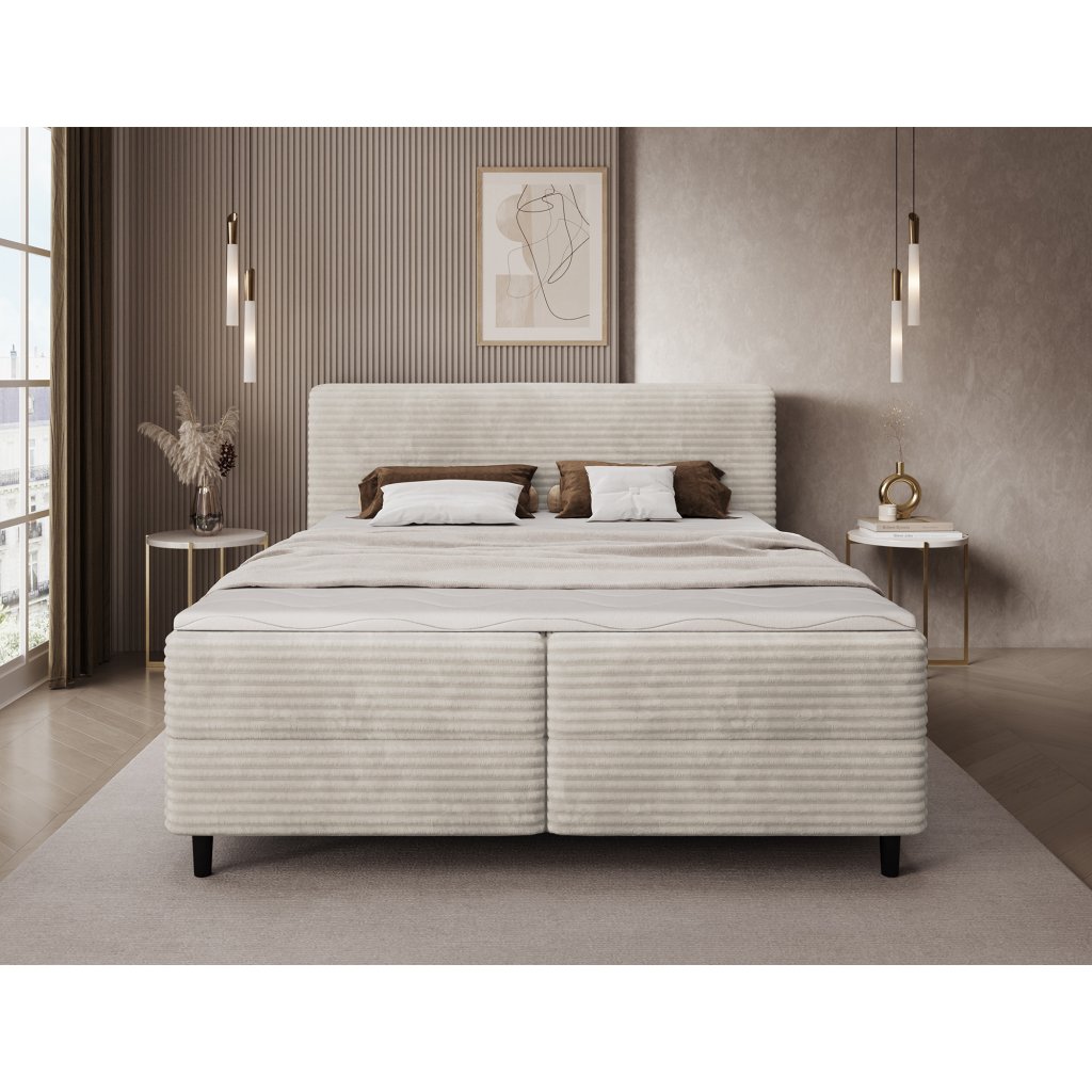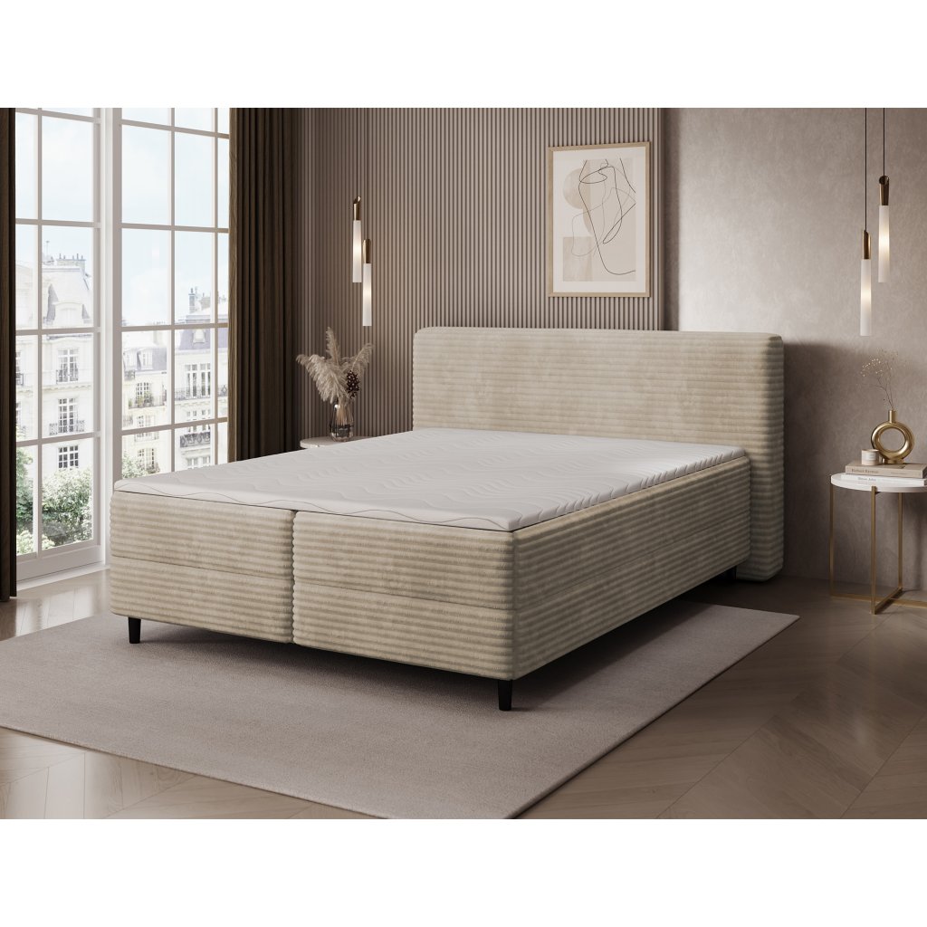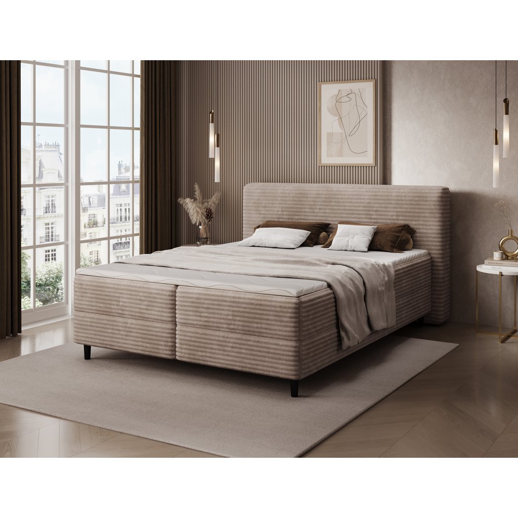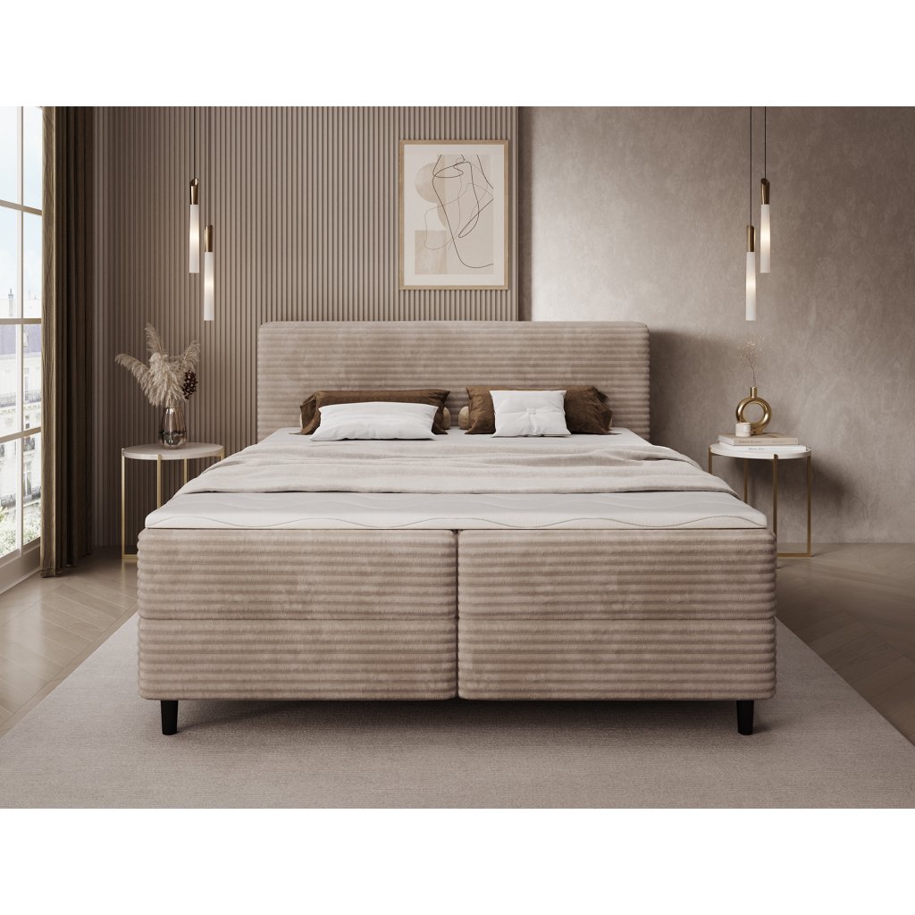 Model Cortiko je vybaven praktickým úložným prostorem pro ložní prádlo, deky či polštáře, což pomáhá udržet v ložnici pořádek a využít prostor na maximum. Elegantní dřevěné nohy v černém provedení dodávají posteli lehkost a moderní vzhled. Díky svému nadčasovému designu se Cortiko skvěle hodí jak do minimalistických, tak do výraznějších interiérů, kde se stává stylovým a funkčním středobodem celé ložnice.