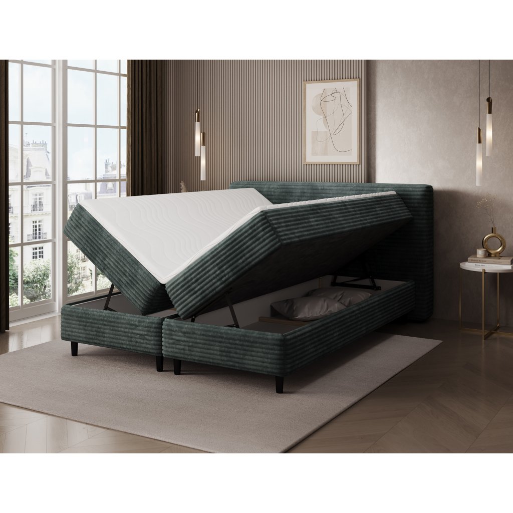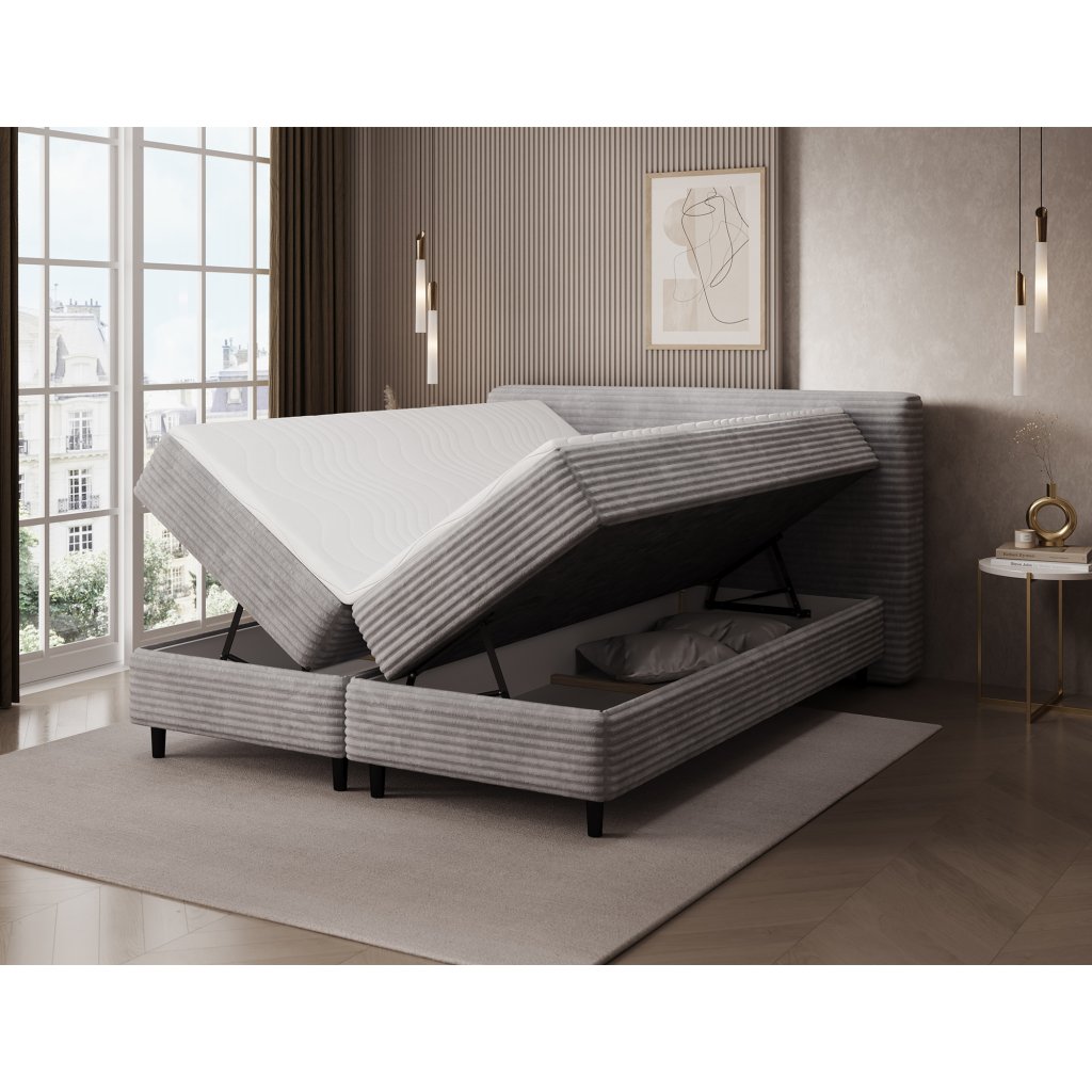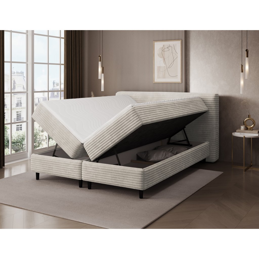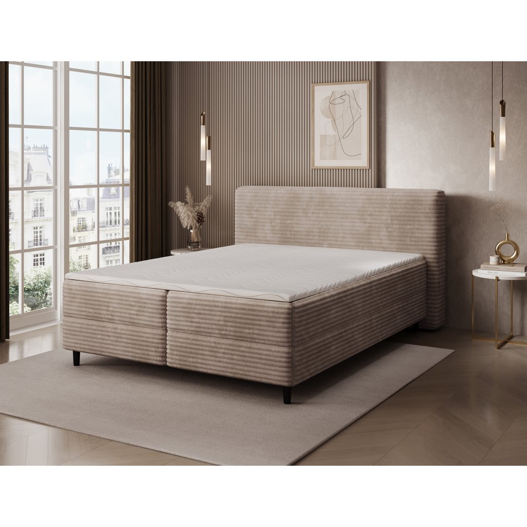 Model Cortiko je vybaven praktickým úložným prostorem pro ložní prádlo, deky či polštáře, což pomáhá udržet v ložnici pořádek a využít prostor na maximum. Elegantní dřevěné nohy v černém provedení dodávají posteli lehkost a moderní vzhled. Díky svému nadčasovému designu se Cortiko skvěle hodí jak do minimalistických, tak do výraznějších interiérů, kde se stává stylovým a funkčním středobodem celé ložnice.