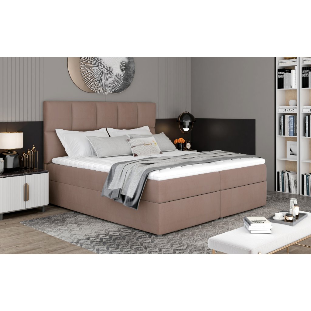 Glossy je exkluzivní, vkusná, prostorná a vhodně tvarovaná kontinentální postel typu boxspring určená pro vyznavače nadprůměrného pohodlí ve dne i v noci. Pohodlný a plnohodnotný spánek na posteli Glossy zaručuje kombinace 15 cm vysoké bonellové matrace a 4 cm vysokého topperu. Taková kombinace zajišťuje zdravý spánek a také správné nastavení páteře do správné polohy. Postel Glossy je funkční, např. díky dvěma prostorným kontejnerům na lůžkoviny a také velkému prostoru pro odpočinek - je k dispozici ve třech velikostech: 145/165/185 x 200 cm. K dalším charakteristickým rysům tohoto modelu patří vysoký sedák, třícentimetrové nohy a originální design Glossy. Jednoduchý tvar vysokého podhlavníku byl obohacen kostkovaným prošitím, které dodává celé konstrukci jedinečný půvab. Glossy je postel, která potěší a nadchne. Stojí za to ji mít ve své ložnici.Parametry produktu: