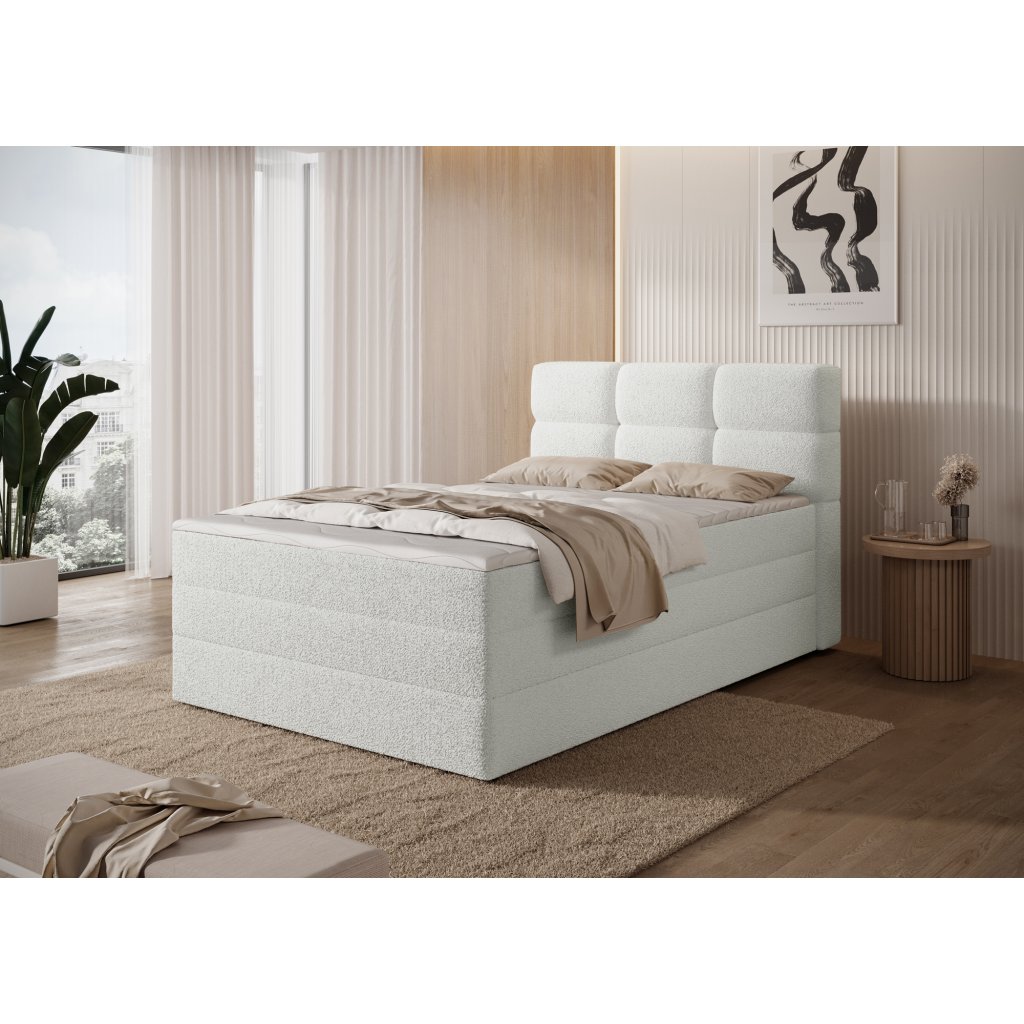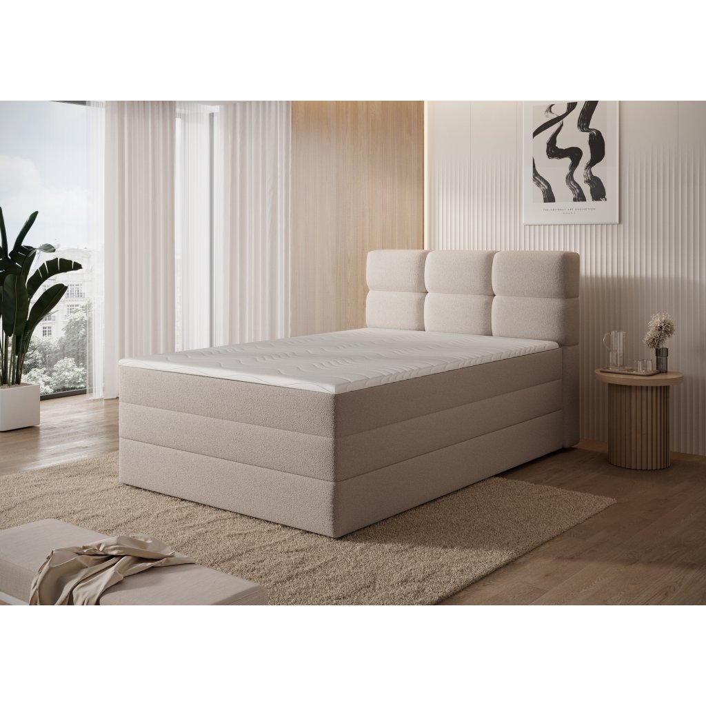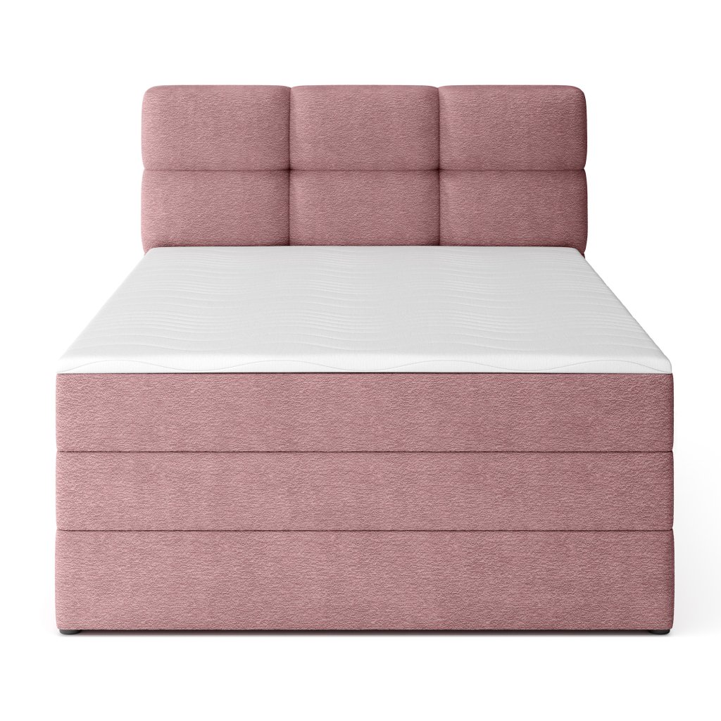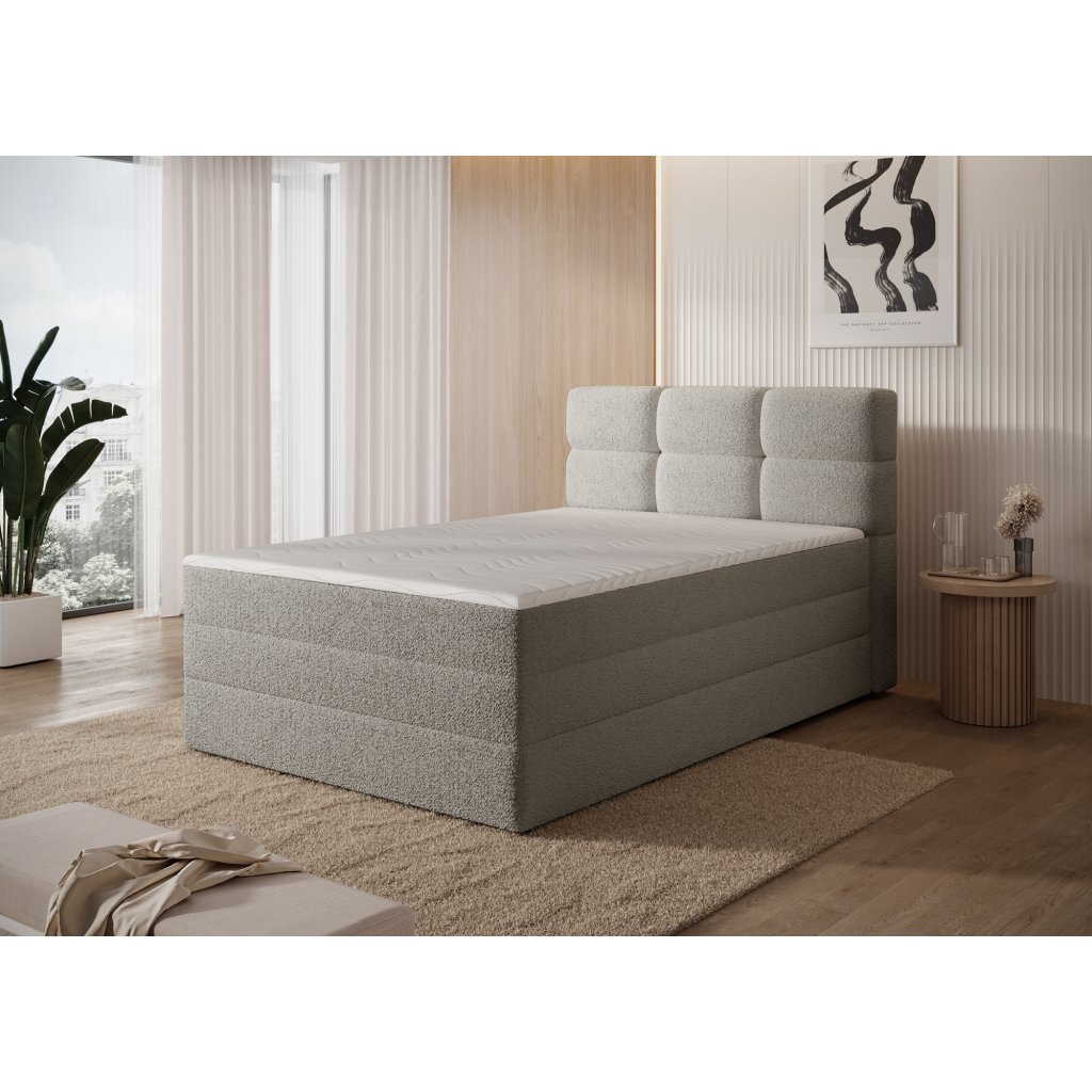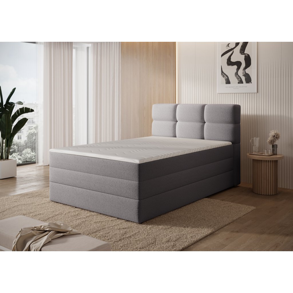 Kontinentální postel Kasped je moderní a funkční volbou pro každou ložnici. Dostupná ve dvou rozměrech – 215x121x108 cm a 215x141x108 cm – umožňuje snadné přizpůsobení individuálním potřebám i velikosti interiéru. Konstrukce postele je založena na pevné rámové základně z masivního dřeva a dřevotřísky, což zajišťuje stabilitu a dlouhou životnost. Středem komfortu je vestavěná matrace s bonelovými pružinami, které poskytují ergonomickou oporu těla a podporují správnou cirkulaci vzduchu během spánku.
