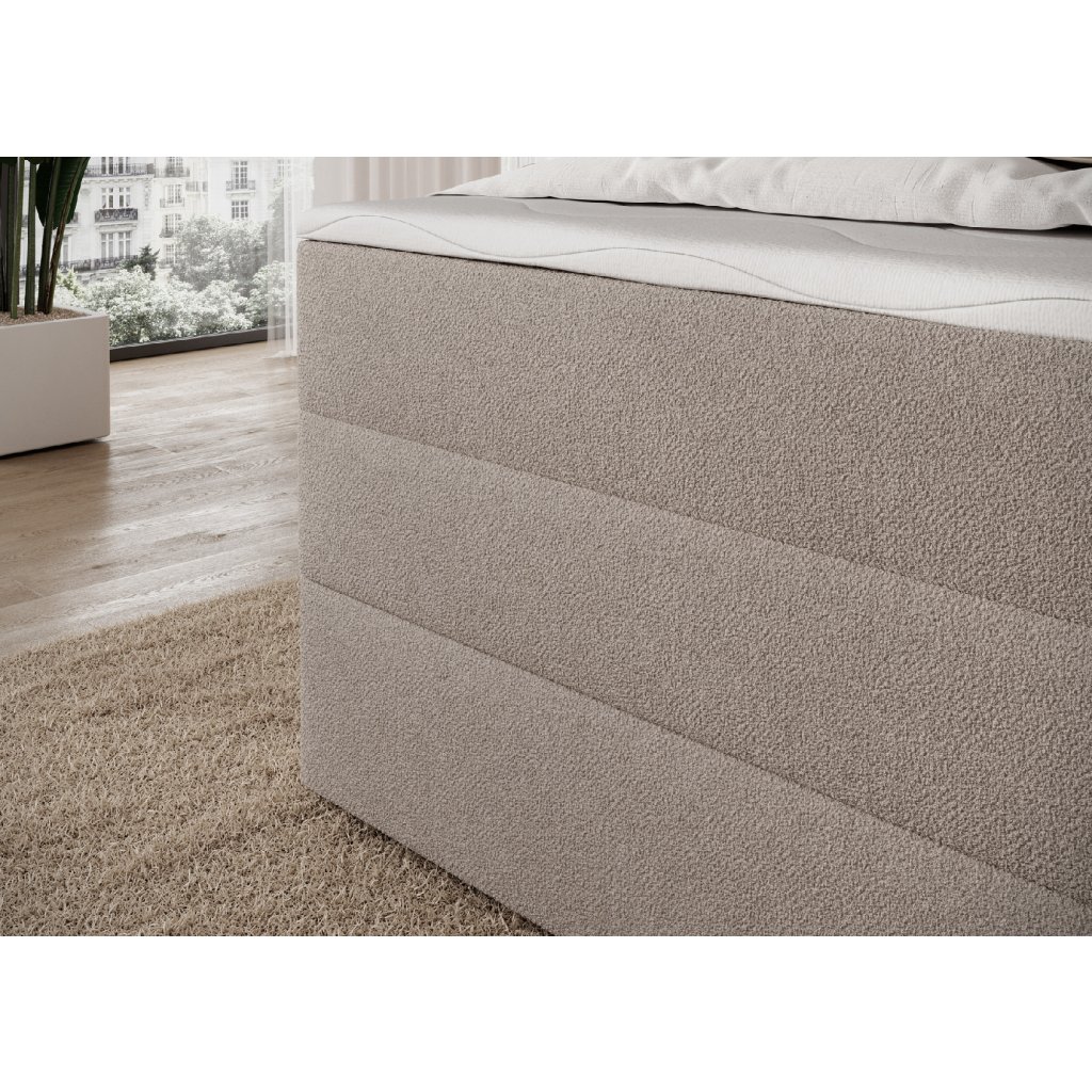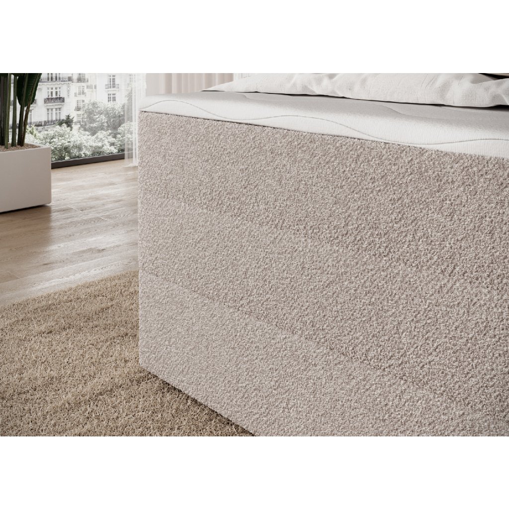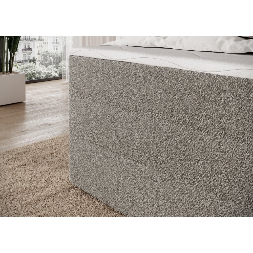 Postel je doplněna dvěma vrstvami kvalitních pěn – T2130 a T2540 – které spolu s pružinovým systémem zvyšují elasticitu a pohodlí. Moderní design s čistými liniemi podtrhují černé nohy z odolného plastu, které jsou nejen stabilní, ale i elegantní. Praktickým prvkem je prostorný úložný box na lůžkoviny, díky němuž lze snadno udržet pořádek a ušetřit místo. Postel Kasped představuje ideální spojení estetiky, kvality a funkčnosti – dokonale zapadne do moderních i klasicky laděných ložnic.