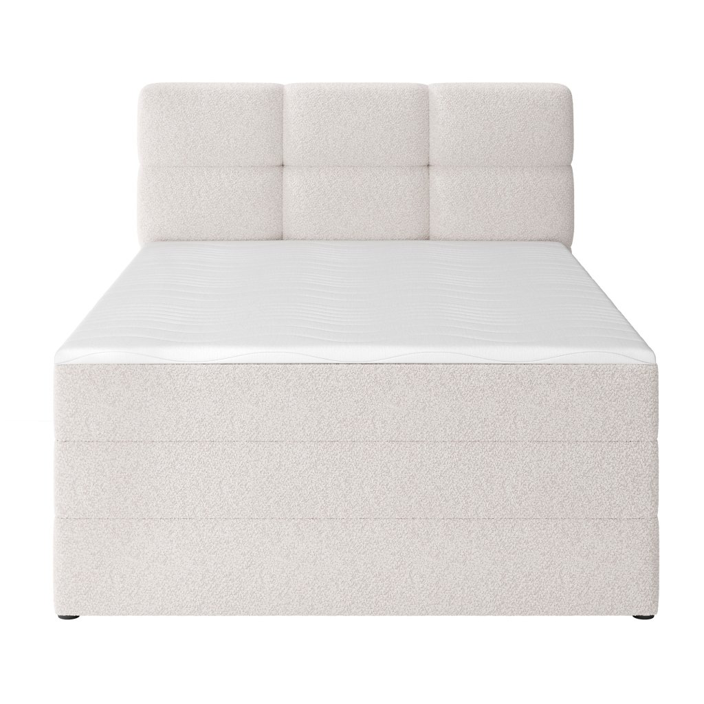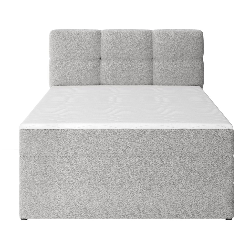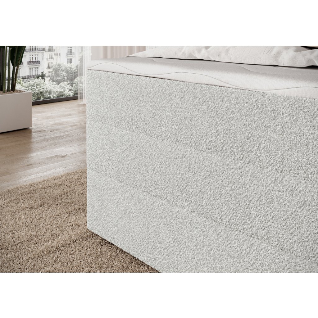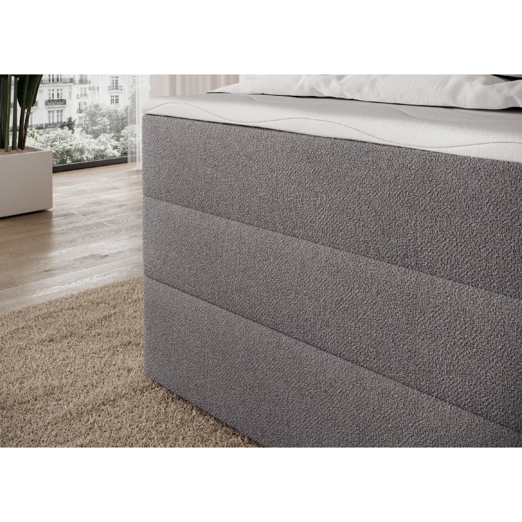 Postel je doplněna dvěma vrstvami kvalitních pěn – T2130 a T2540 – které spolu s pružinovým systémem zvyšují elasticitu a pohodlí. Moderní design s čistými liniemi podtrhují černé nohy z odolného plastu, které jsou nejen stabilní, ale i elegantní. Praktickým prvkem je prostorný úložný box na lůžkoviny, díky němuž lze snadno udržet pořádek a ušetřit místo. Postel Kasped představuje ideální spojení estetiky, kvality a funkčnosti – dokonale zapadne do moderních i klasicky laděných ložnic.