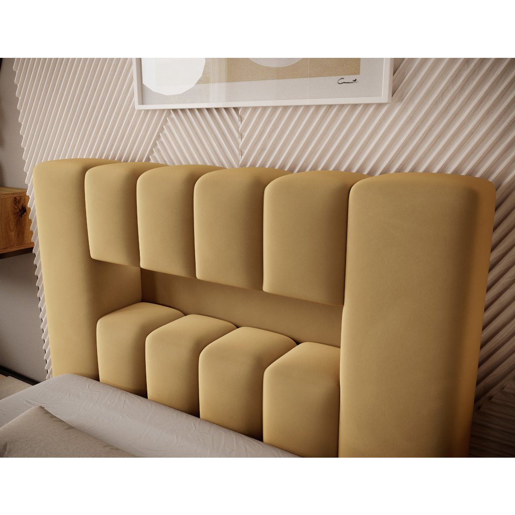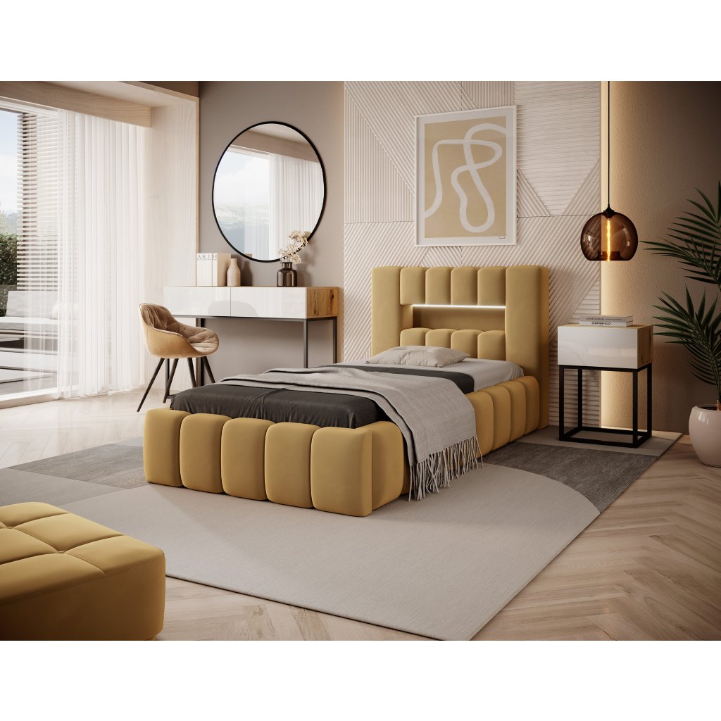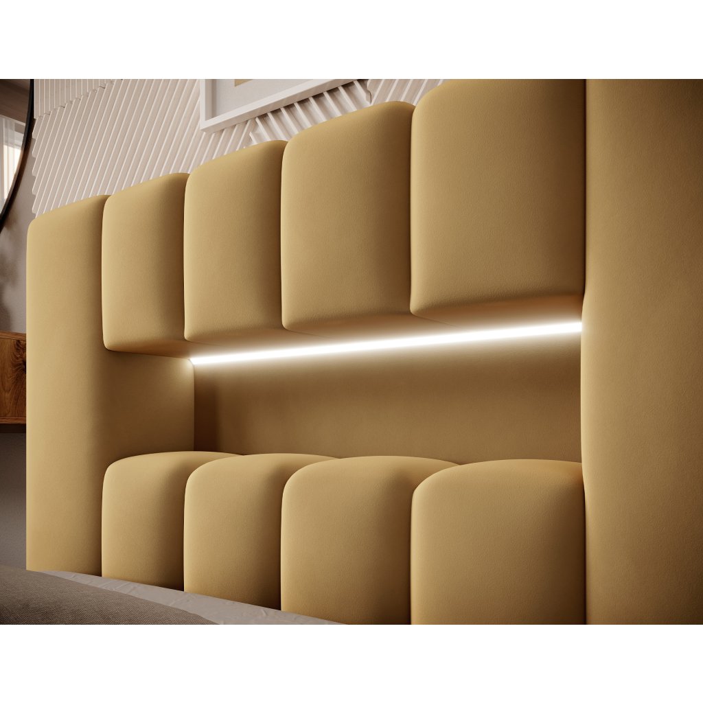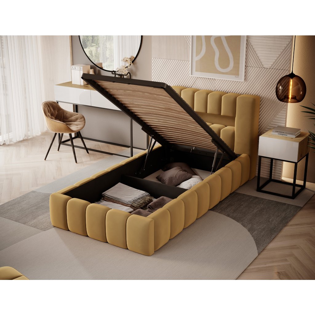 Lamica je velmi pohodlná, měkká a originální postel ve stylu glamour, která zaujme svým neobvyklým tvarem a formou. Tento kus nábytku se skládá z korpusu a dřevěného rámu. Jeho součástí je také kontejner na lůžkoviny. Velikost spací plochy 90x200 cm poskytuje dostatečný prostor pro relaxační odpočinek.Naše postel vyniká svým designem, protože vysoký podhlavník a boky postele jsou vyrobeny z přídavné pěny. Estetický zážitek umocňuje podélné rozsáhlé prošívání. Široká škála barevných variant umožňuje snadné sladění postele s celkovým interiérem.