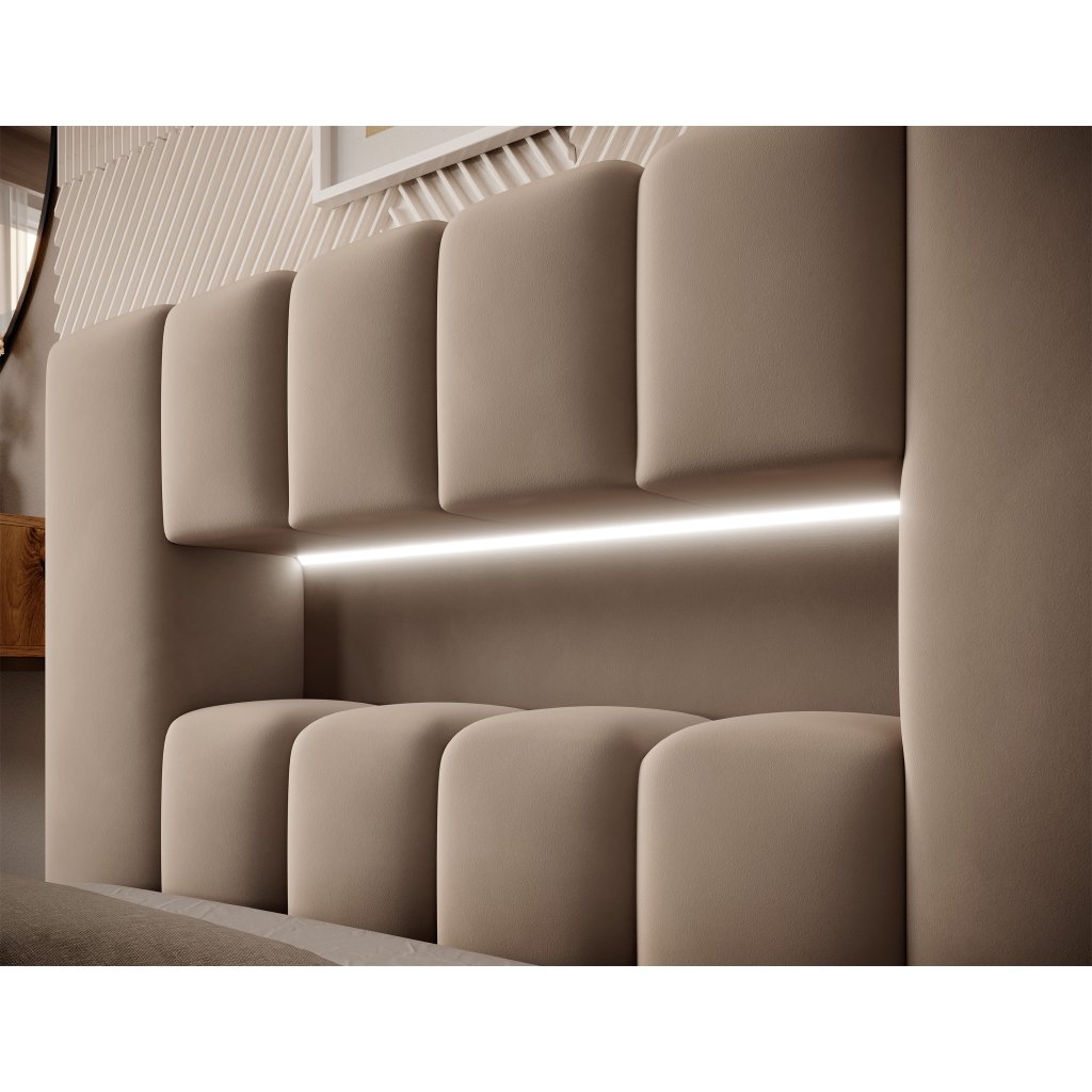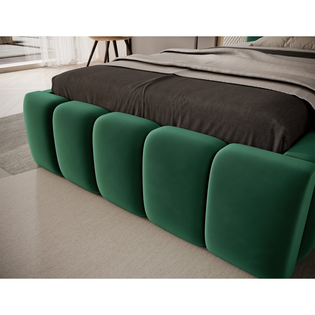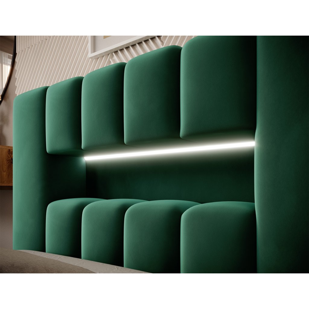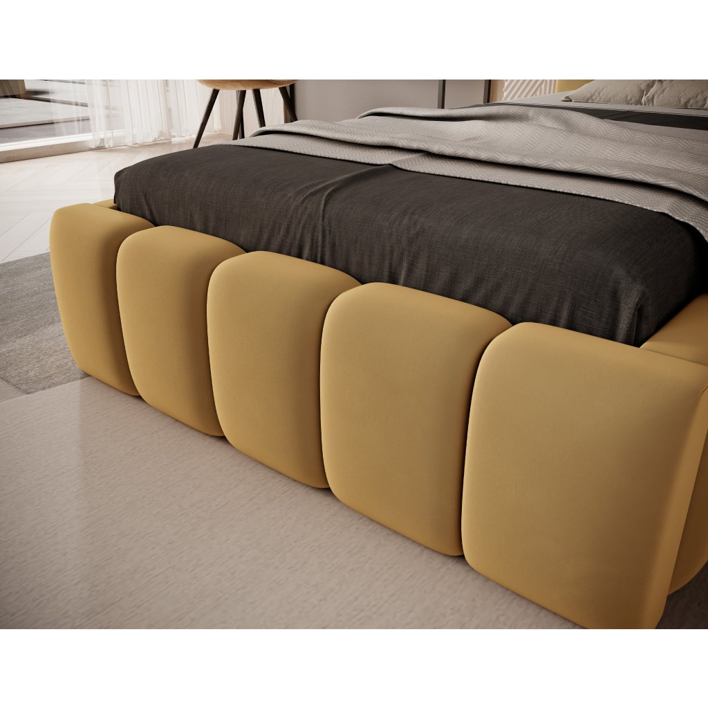 Lamica je velmi pohodlná, měkká a originální postel ve stylu glamour, která zaujme svým neobvyklým tvarem a formou. Tento kus nábytku se skládá z korpusu a dřevěného rámu. Jeho součástí je také kontejner na lůžkoviny. Velikost spací plochy 90x200 cm poskytuje dostatečný prostor pro relaxační odpočinek.Naše postel vyniká svým designem, protože vysoký podhlavník a boky postele jsou vyrobeny z přídavné pěny. Estetický zážitek umocňuje podélné rozsáhlé prošívání. Široká škála barevných variant umožňuje snadné sladění postele s celkovým interiérem.