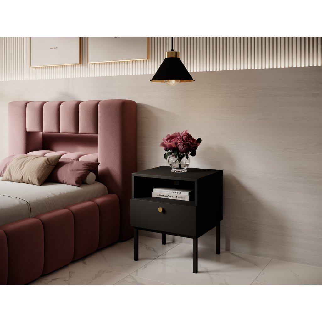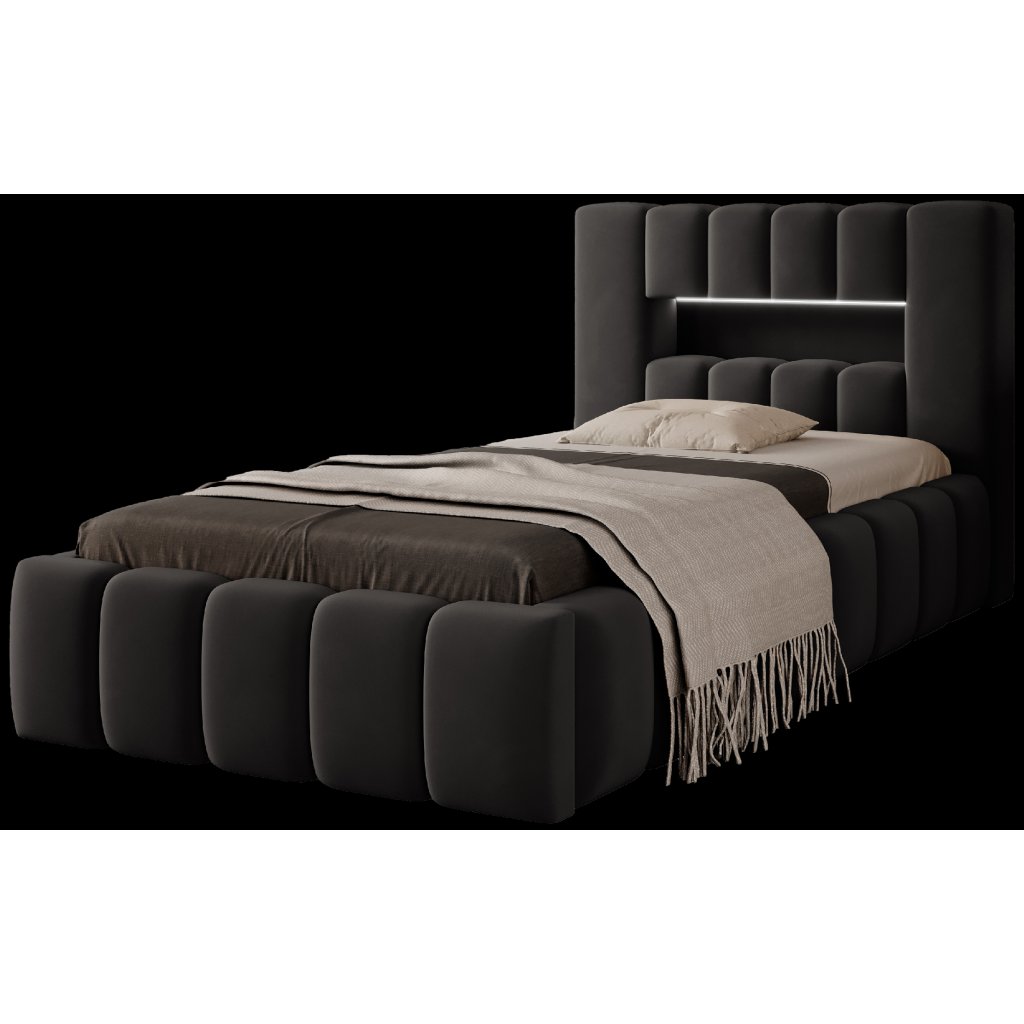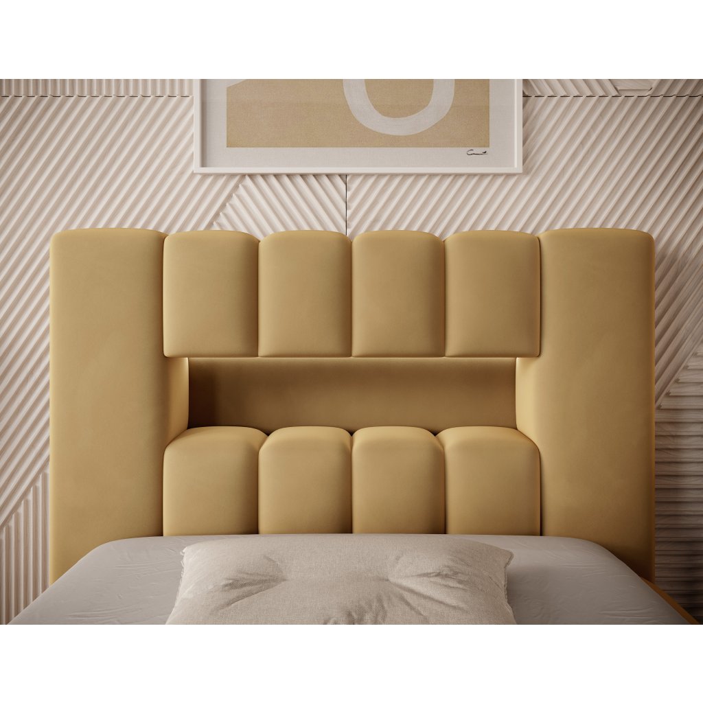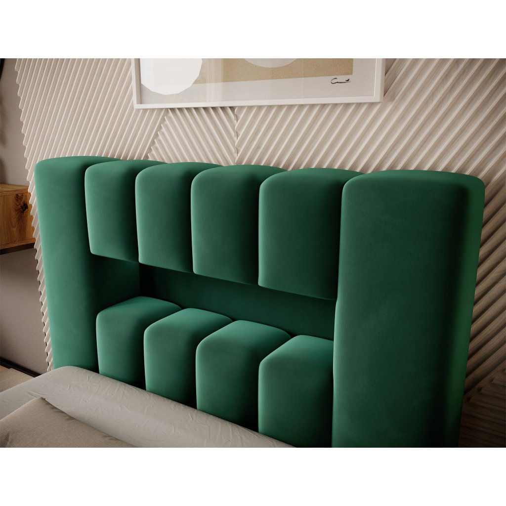 Lamica je velmi pohodlná, měkká a originální postel ve stylu glamour, která zaujme svým neobvyklým tvarem a formou. Tento kus nábytku se skládá z korpusu a dřevěného rámu. Jeho součástí je také kontejner na lůžkoviny. Velikost spací plochy 90x200 cm poskytuje dostatečný prostor pro relaxační odpočinek.Naše postel vyniká svým designem, protože vysoký podhlavník a boky postele jsou vyrobeny z přídavné pěny. Estetický zážitek umocňuje podélné rozsáhlé prošívání. Široká škála barevných variant umožňuje snadné sladění postele s celkovým interiérem.