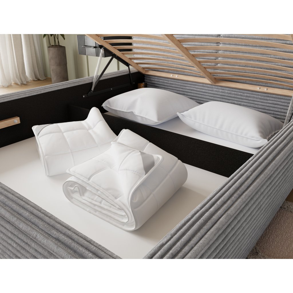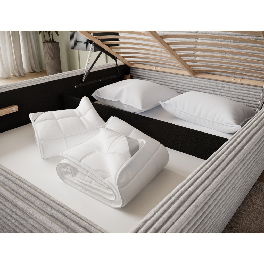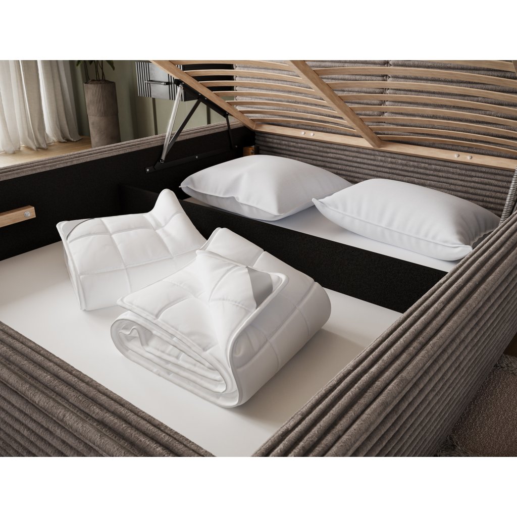 Výplň z kvalitní pěny T2130 zajišťuje vysoký komfort a dlouhou životnost, zatímco stabilní černé nohy z odolného plastu dodávají konstrukci pevnost a elegantní vzhled. Postel je vybavena praktickým úložným prostorem na lůžkoviny, který pomáhá udržet ložnici přehlednou a útulnou. Moderní design a precizní zpracování činí z modelu Pesillo ideální volbu pro každého, kdo hledá pohodlí, kvalitu a styl v jednom.