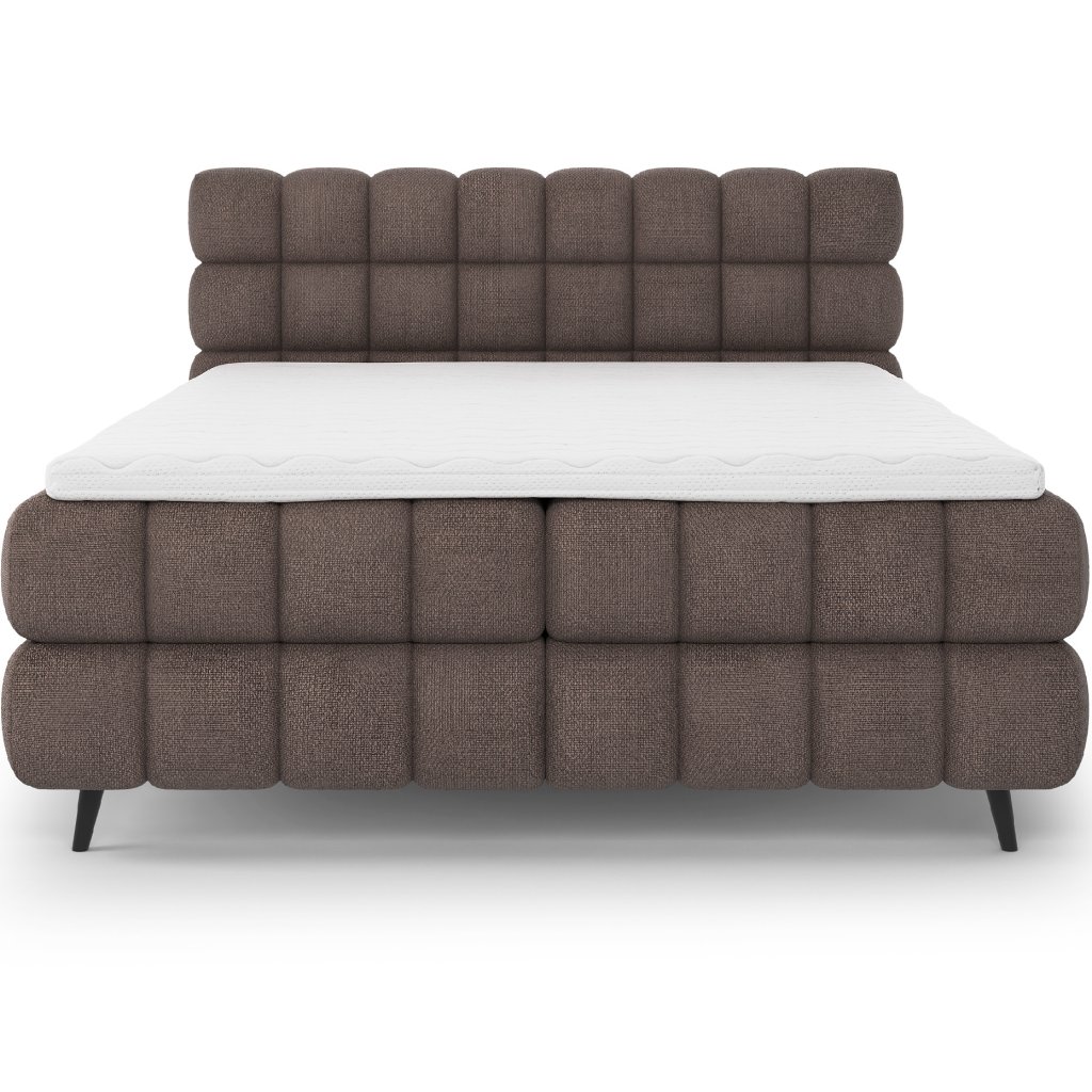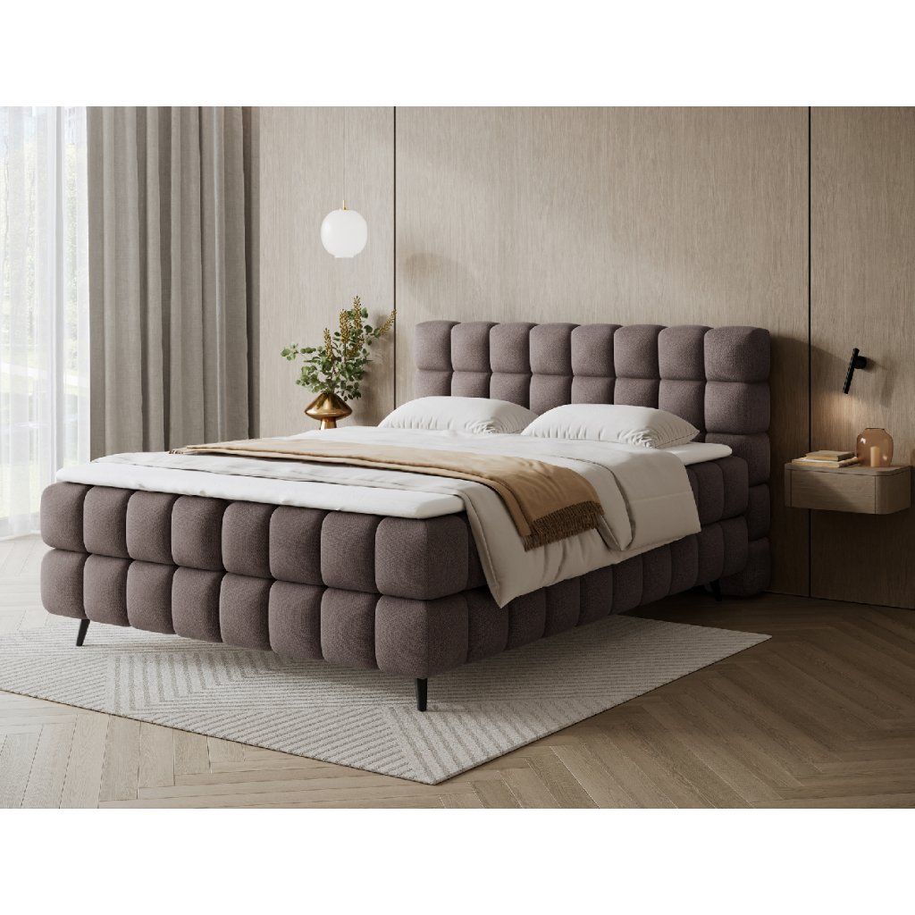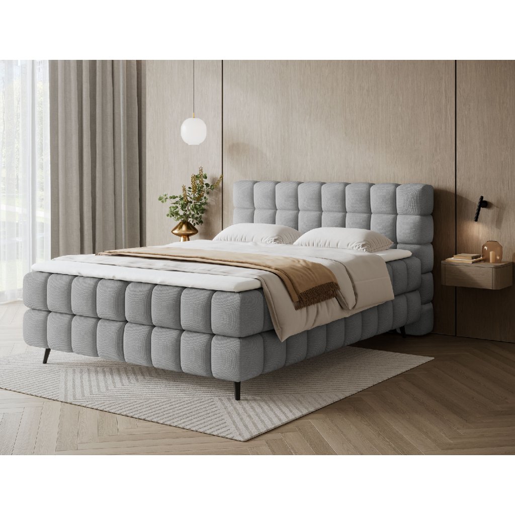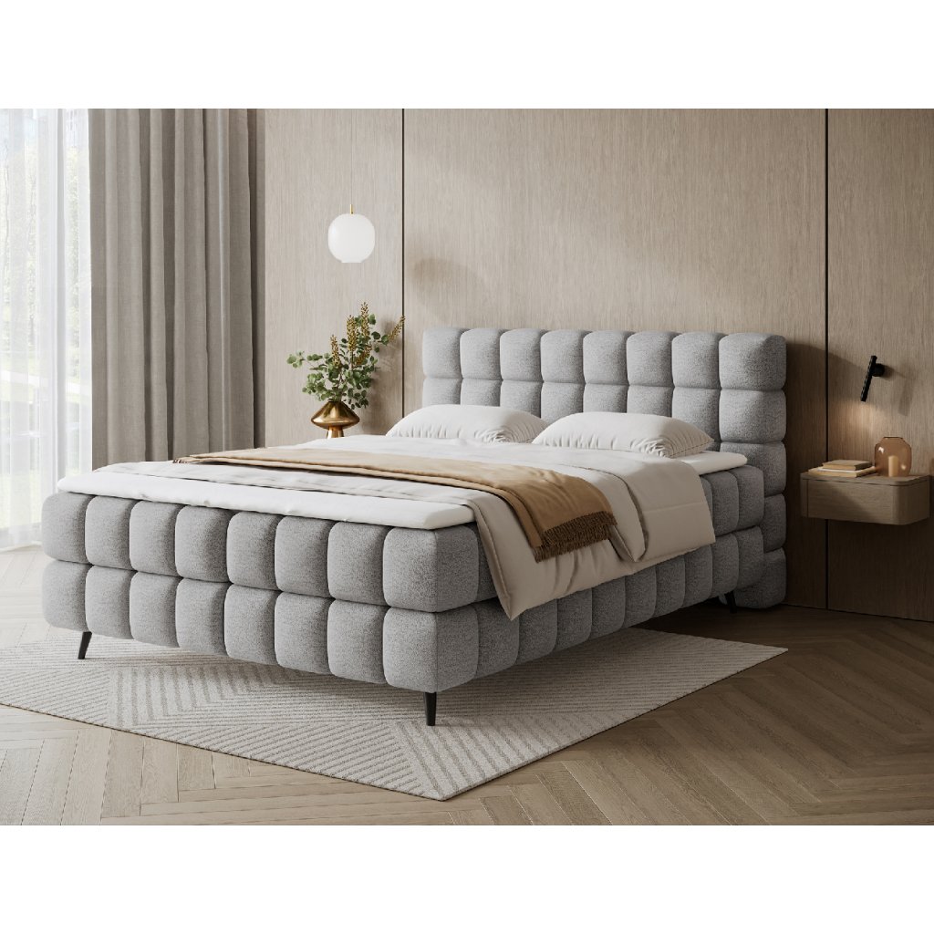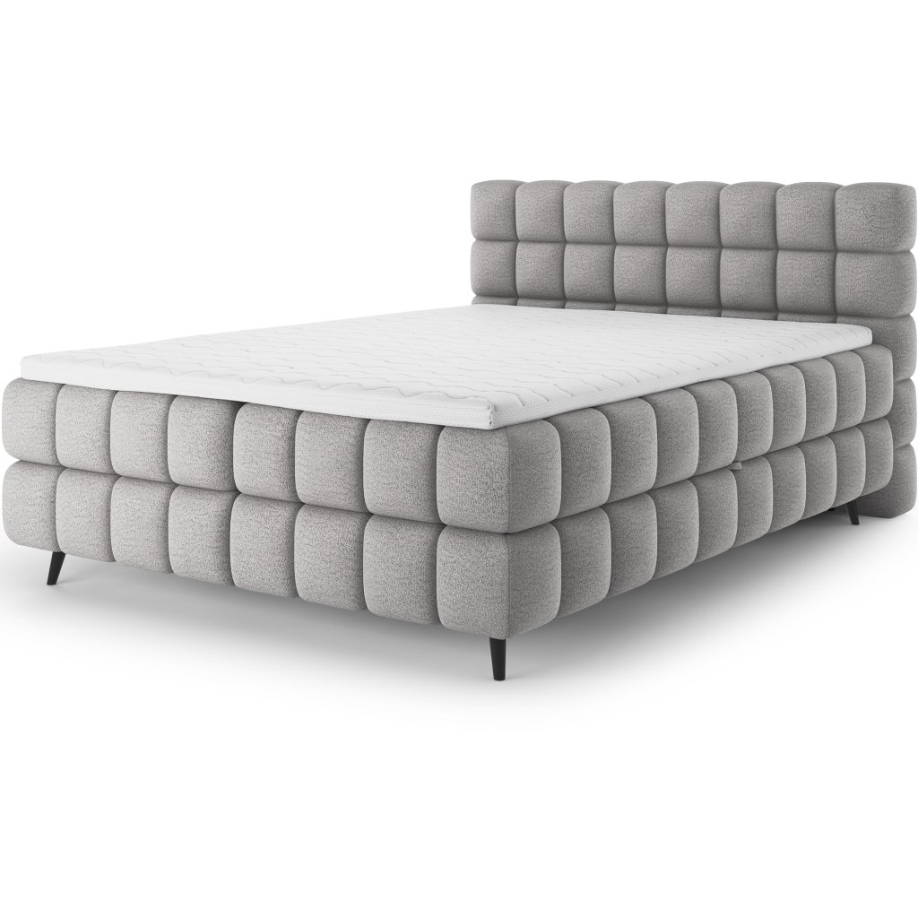 Kontinentální postel Sabeno představuje spojení elegance, funkčnosti a pohodlí. Je dostupná ve třech rozměrech – 140×200 cm, 160×200 cm a 180×200 cm – takže ji lze snadno přizpůsobit individuálním potřebám. Celková výška konstrukce je 111 cm a hloubka 222 cm, díky čemuž působí postel stabilně a reprezentativně. Vnitřní část tvoří kombinace bonelových pružin a pěny T2540, které poskytují ideální podporu těla a dlouhodobý komfort spánku.