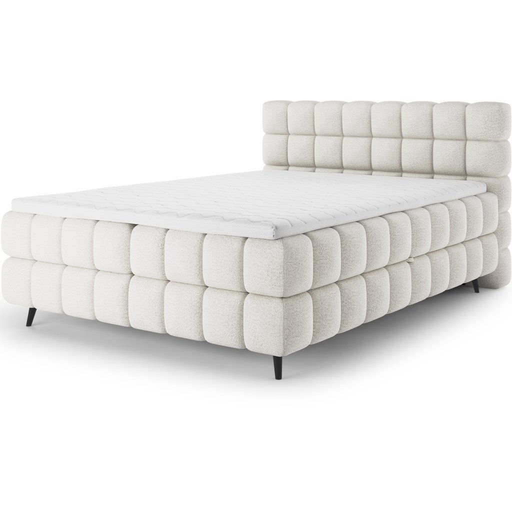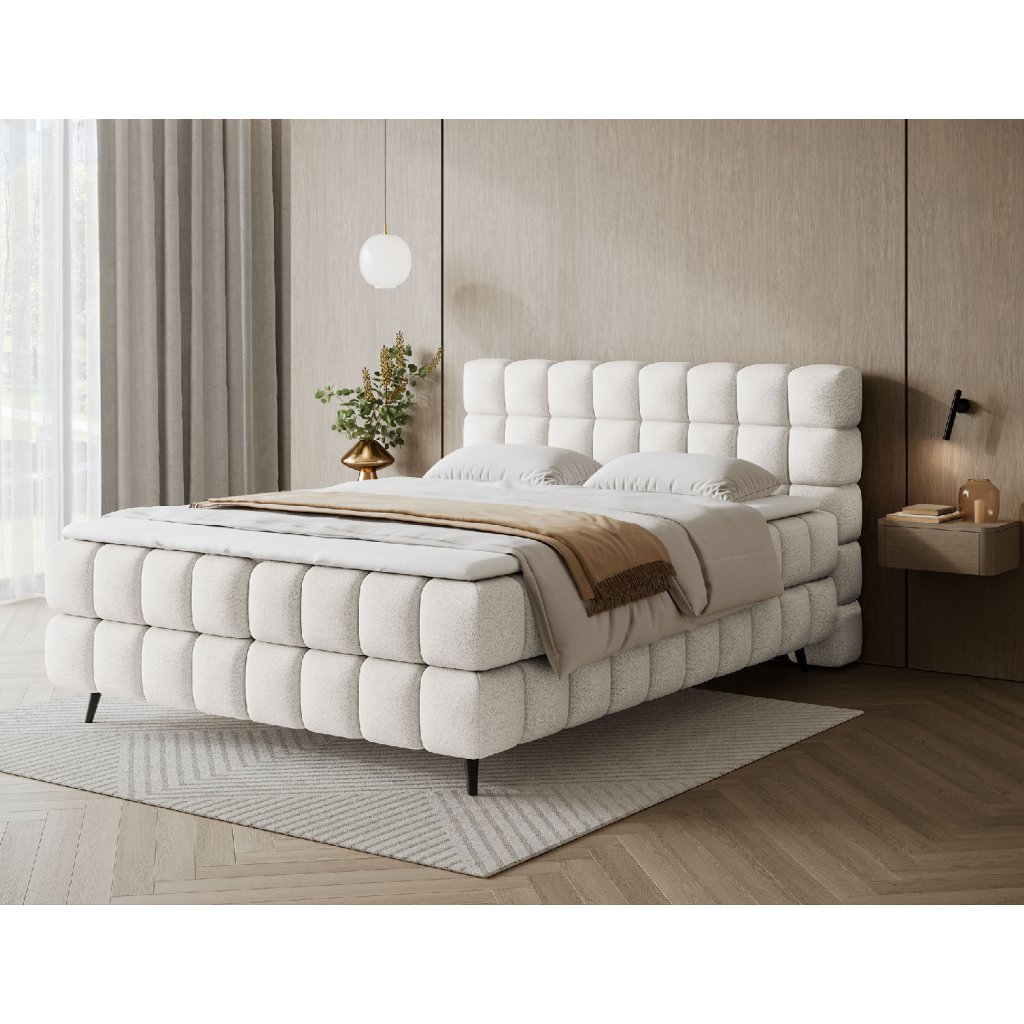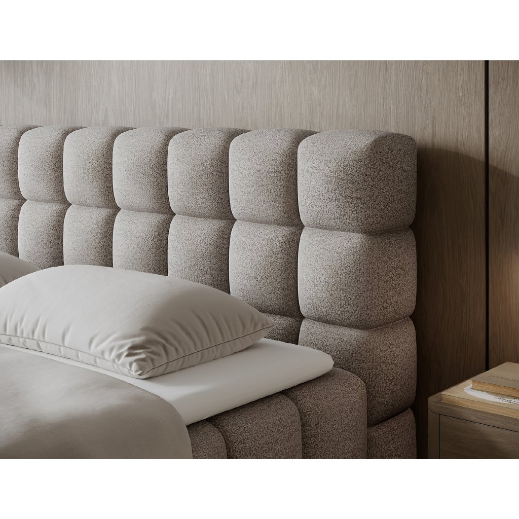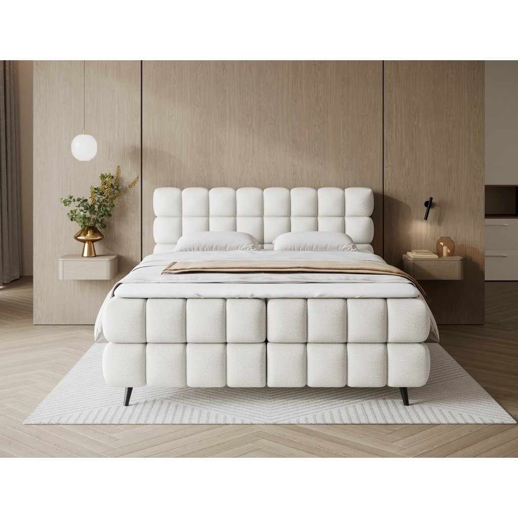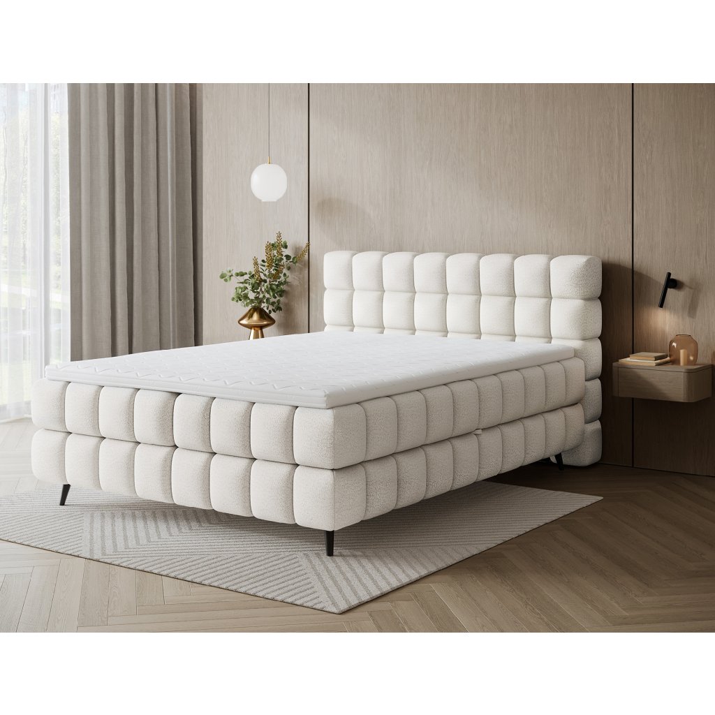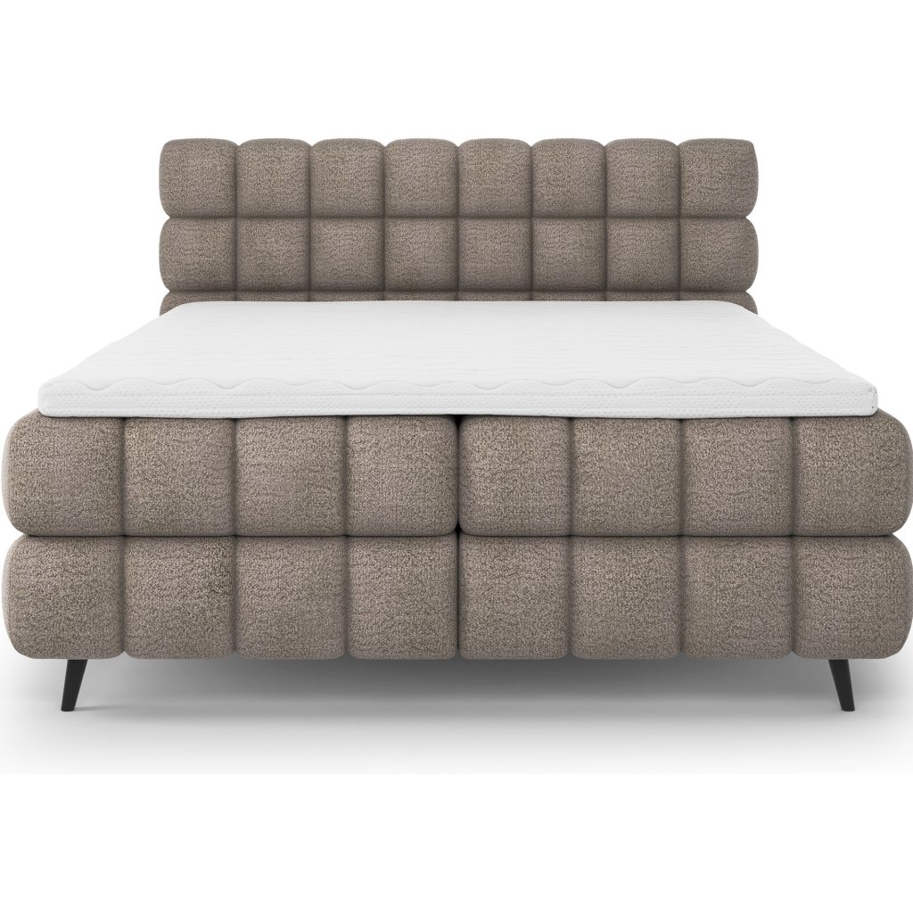 Kontinentální postel Sabeno představuje spojení elegance, funkčnosti a pohodlí. Je dostupná ve třech rozměrech – 140×200 cm, 160×200 cm a 180×200 cm – takže ji lze snadno přizpůsobit individuálním potřebám. Celková výška konstrukce je 111 cm a hloubka 222 cm, díky čemuž působí postel stabilně a reprezentativně. Vnitřní část tvoří kombinace bonelových pružin a pěny T2540, které poskytují ideální podporu těla a dlouhodobý komfort spánku.
