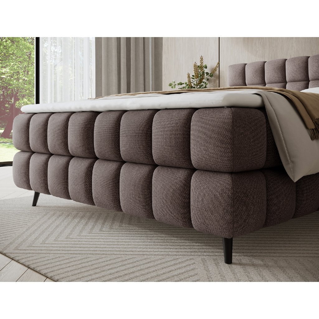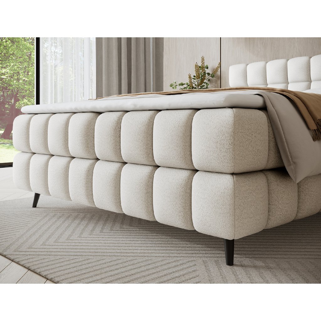 Model Sabeno je vybaven praktickým úložným prostorem pro lůžkoviny, který usnadňuje udržování pořádku a efektivní využití prostoru. Dřevěné nohy v černém provedení dodávají celé konstrukci eleganci a vizuální lehkost. Moderní design postele dokonale ladí s minimalistickými i výraznějšími interiéry, čímž se Sabeno stává stylovým a funkčním prvkem každé ložnice. Díky kvalitnímu zpracování a důrazu na detail je ideální volbou pro ty, kteří hledají spojení pohodlí, trvanlivosti a estetiky.