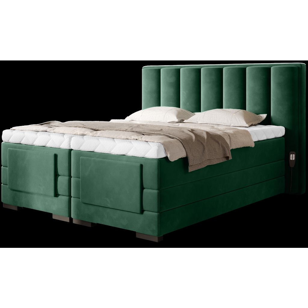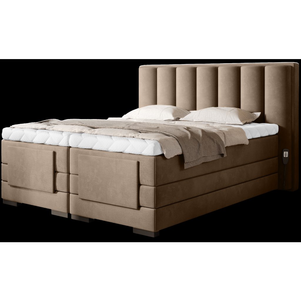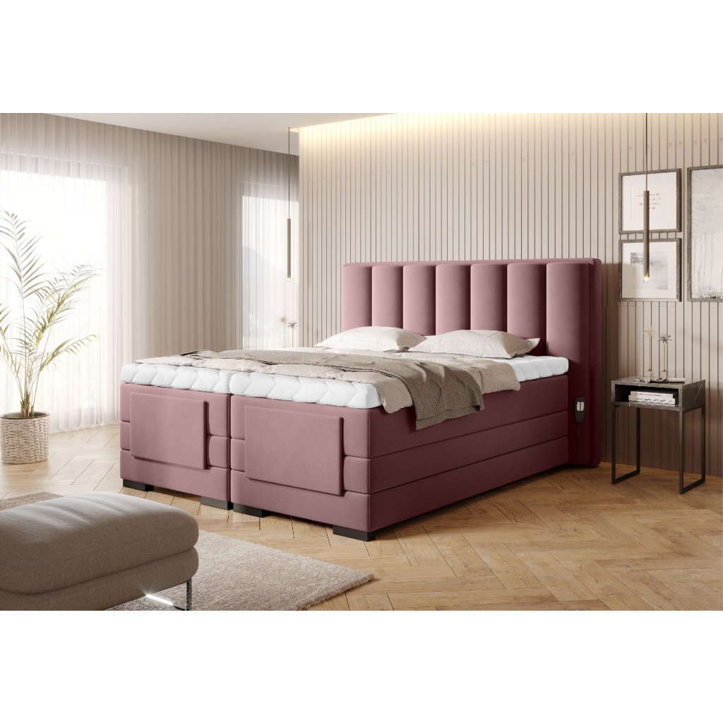 Nastavitelná elektrická postel Veros vám umožní ovládat pohodlí vašeho odpočinku a zajistí vám pohodlný a klidný spánek. Má motorizovaný, nastavitelný rám, který uživateli umožňuje bez námahy nastavit opěrku nohou a hlavovou část. K polohování postele není třeba ani vstávat od lůžka, protože součástí balení jsou dva dálkové ovladače. V případě jednolůžka je součástí balení jeden dálkový ovladač. Postel Veros se skládá až ze 2 hlavních matrací: kostní a taštičkové a vrchní matrace. Hlavní matrace zajišťují pohodlí a nejvyšší úroveň komfortu, jakou může kontinentální postel poskytnout. Topperová matrace je naopak skvělou ochranou proti znečištění nebo poškození hlavních matrací. Mezi výhody topperů navíc patří skutečnost, že poskytují extra měkkost a oporu během spánku a prodlužují životnost hlavní matrace. Topperová matrace, kterou je kontinentální postel Veros vybavena, je na druhou stranu chráněna snímatelným potahem Silk, který lze prát v pračce. Elektrická postel Veros je také skvěle vypadajícím doplňkem ložnice. Čalouněná záda vám dávají možnost udělat z postele interiérového hrdinu a umístit nábytek do středu místnosti. Černá barva nohou se jako univerzální barva snadno hodí do mnoha různých uspořádání ložnice. Další výhodou pro výběr ideální postele do vaší ložnice je dostupnost našeho nábytku Veros až ve 4 velikostech spací plochy: 90/140/160/180 x 200 cm.