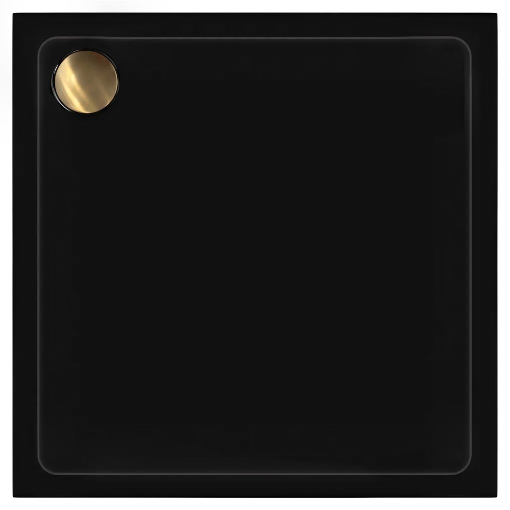 Čtvercová akrylátová sprchová vanička REA SAVOY 80x80 cm černá, krytka - zlatá kartáčovaná