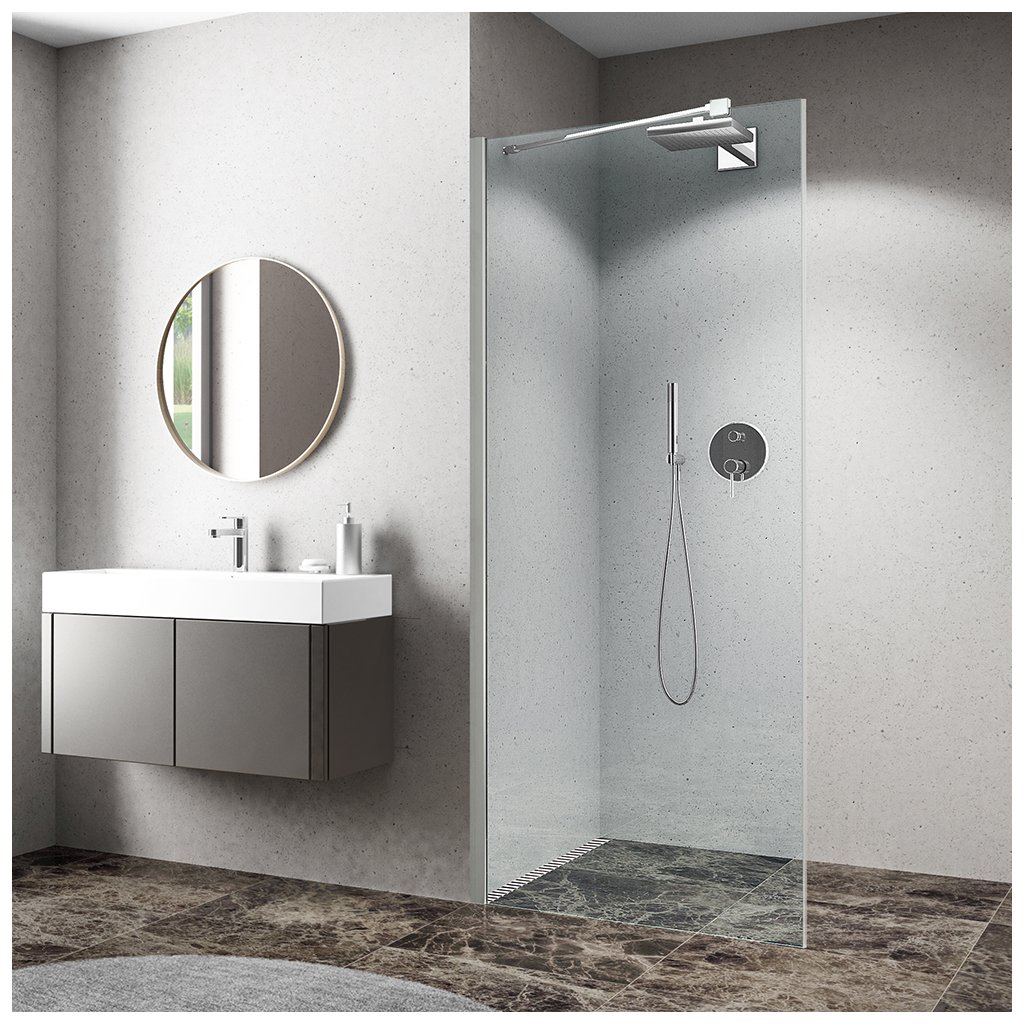 Profily sprchových dveří a boční stěny jsou vyrobeny z hliníku a nabízíme je v provedení Brillant a Černý elox s transparentní výplní bezpečnostních skel. Boční stěny jsou pomocí flexibilní vzpěry upevněny ke zdi, což zaručuje, že váš sprchový kout bude stabilní. Krásu koutu doplňuje vysoce designové madlo.