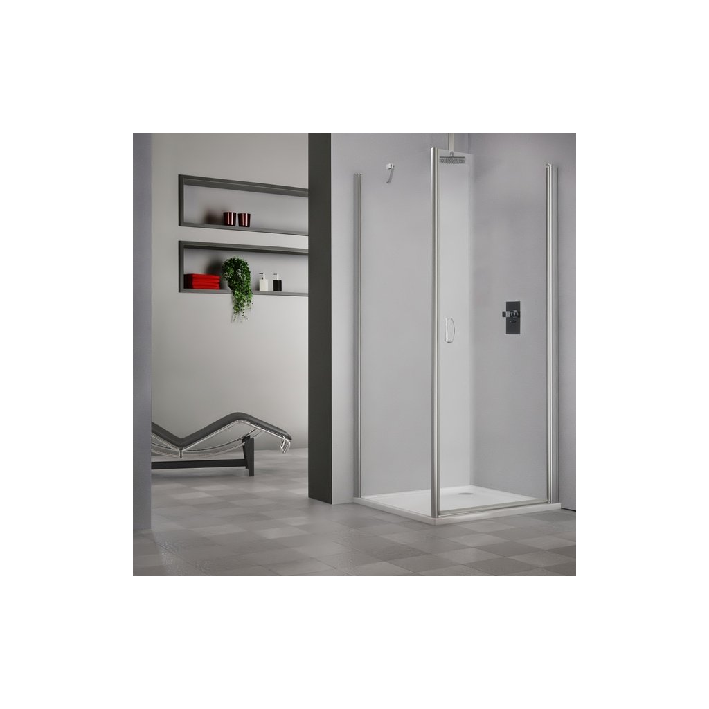 Pevná stěna s jednokřídlými otočnými sprchovými dveřmi. Výška 2000 mm. Rozměry 800 / 900 / 1000 mm. Možnost vytvoření čtvercového nebo obdélníkového sprchového koutu. Možnost otevírání na pravou či levou stranu, dovnitř i ven. Zdvihový mechanismus pro aretaci v základní poloze, široký bezbariérový vstup. Bezpečnostní čiré sklo Transparent o síle 6 mm, nekorodující stabilní hliníkové profily v barvě Brillant. Skleněné výplně jsou ZDARMA ošetřeny technologií RothETC, která brání usazování vodního kamene.