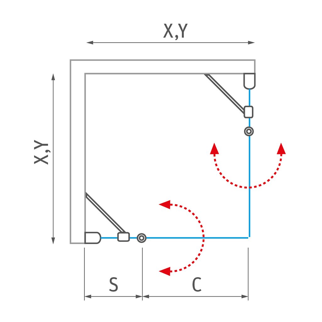 Sprchové dveře jsou vyráběny v pěti standardních velikostech - od 800 mm do 1200 mm. Přesná výška včetně kotvících elementů je 2023 mm.