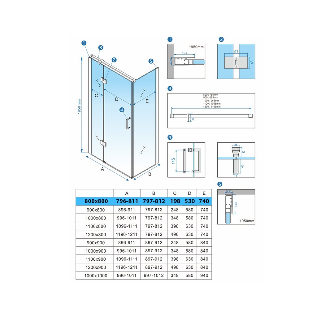 | Instalační rozměry - zástěna (mm): | 797-812 |