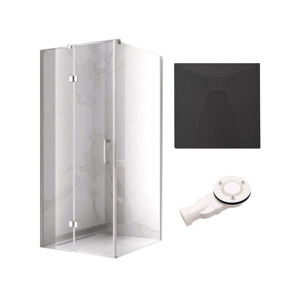 Čtvercový sprchový kout HYD-SK01C 90x90 chrom/transparent + vanička HYD-SSV-RIKO černá