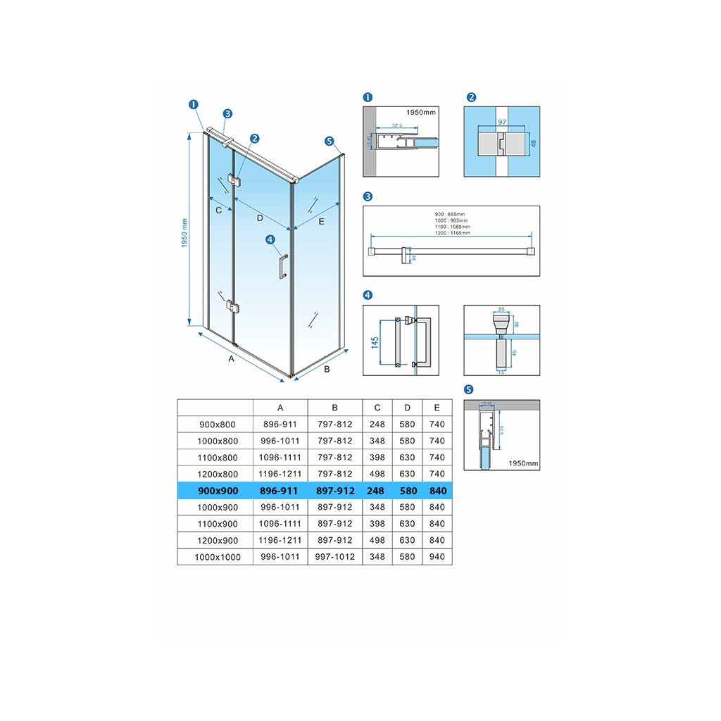 | Instalační rozměry - zástěna (mm): | 897-912 |