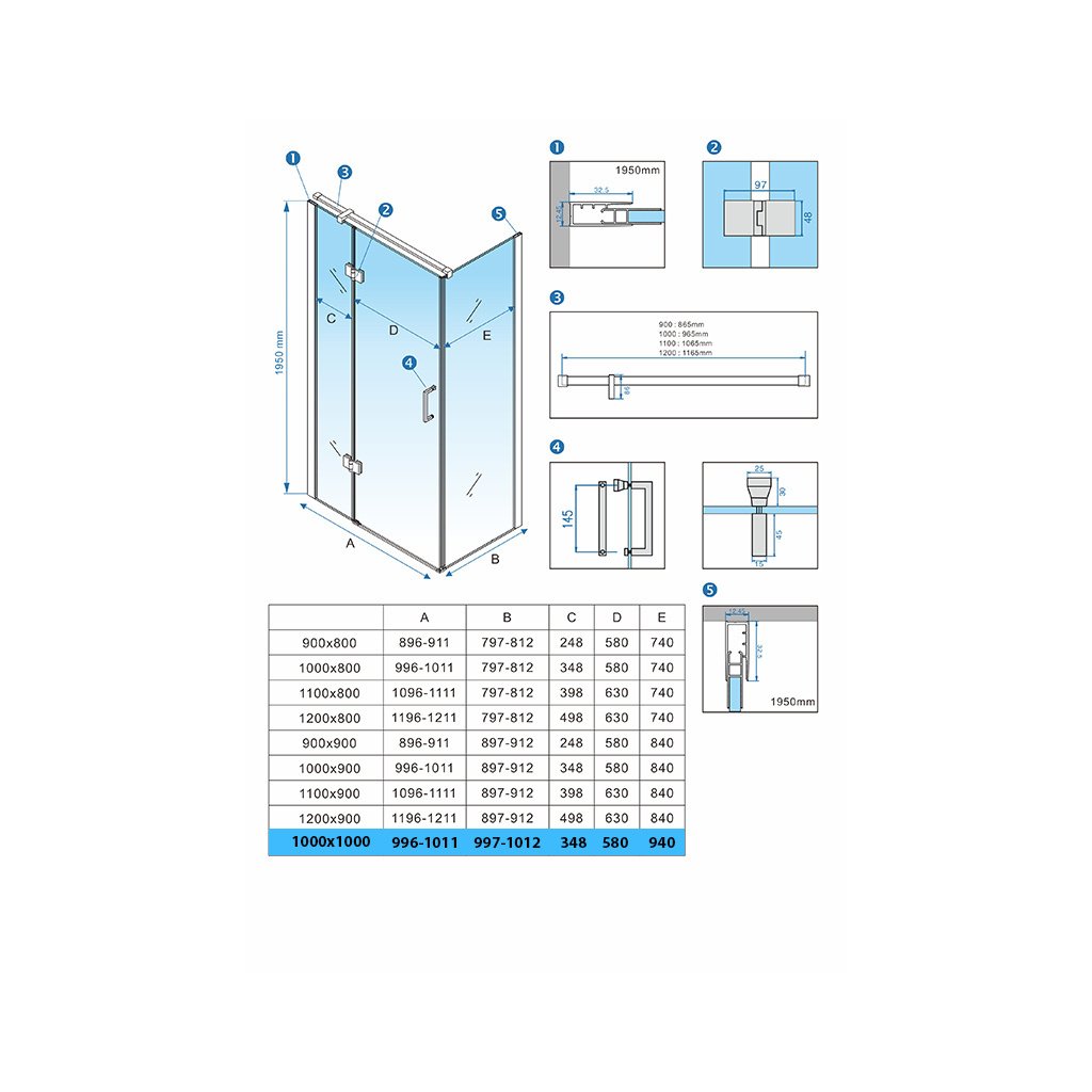 | Šířka zástěny (mm): | 1000 |