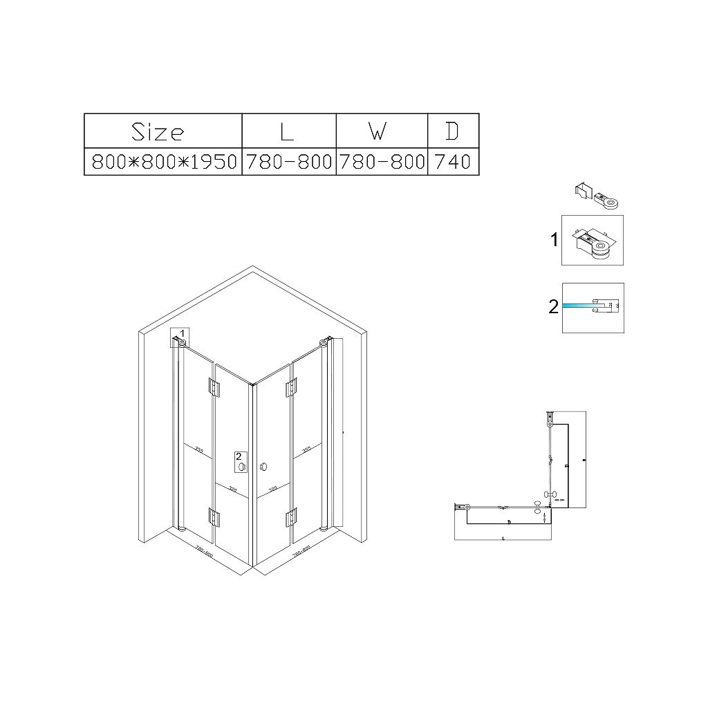 Čtvercový sprchový kout HYD-SK05 80x80 černá/transparent - bez vaničky