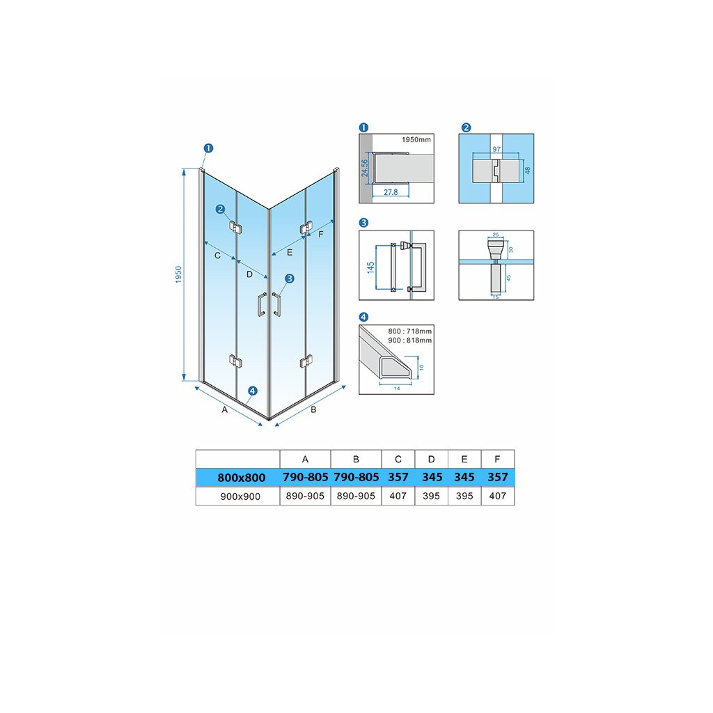 Čtvercový sprchový kout HYD-SK08 je vyroben z odolných a kvalitních komponentů splňují požadavky i těch nejnáročnějších zákazníků.